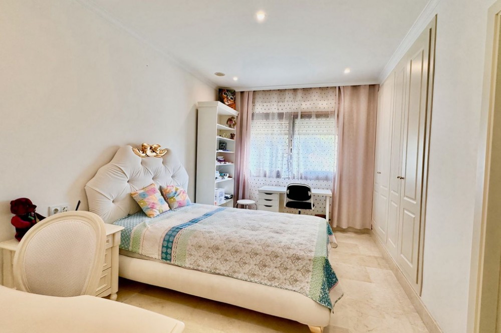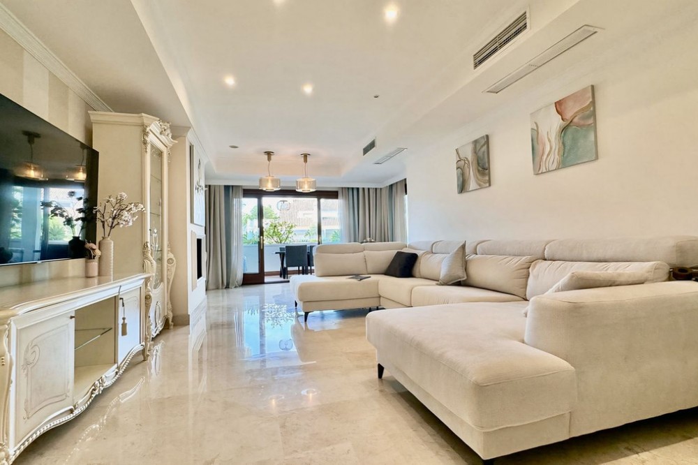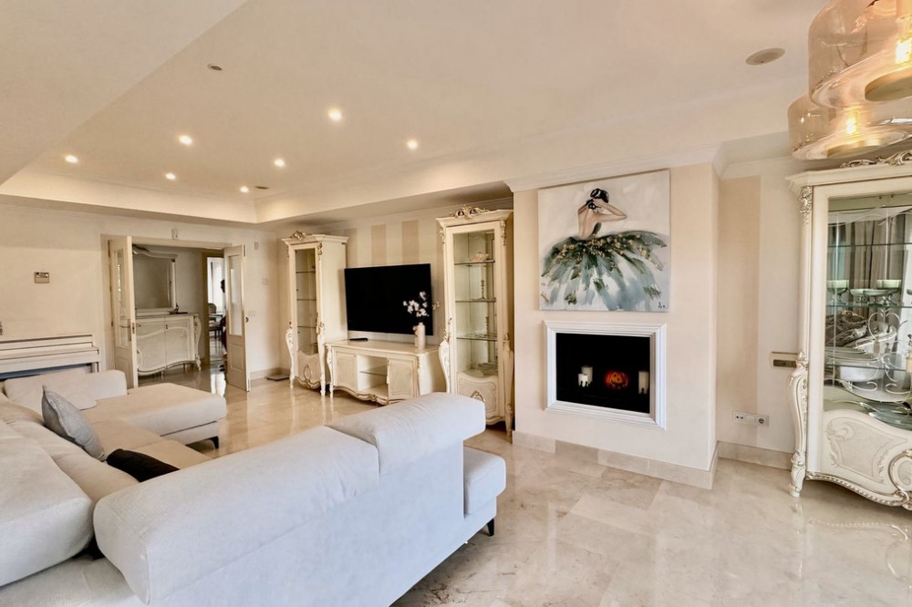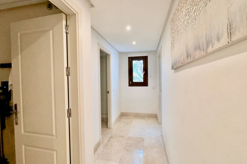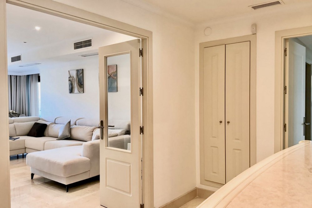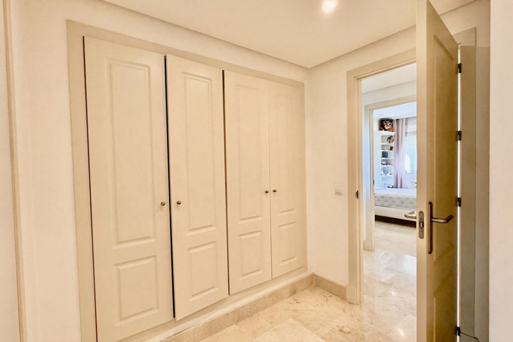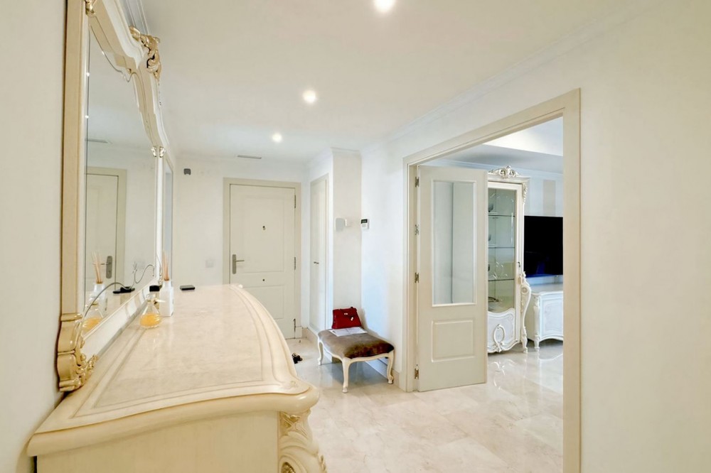 - Ruim appartement op de eerste verdieping | Marbella Golden Mile Dit uitzonderlijke appartement op de eerste verdieping, gelegen in de prestigieuze, afgesloten woonwijk Lomas del Rey, is een toonbeeld van het allerbeste op het gebied van hedendaags mediterraan wonen. Het appartement is vakkundig gebouwd volgens de hoogste specificaties en elk element is met uiterste zorg ontworpen – van de architectonische afwerking tot de doordachte indeling van de royale binnenruimtes. De indeling van de woning kenmerkt zich door een ruime, open keuken met eethoek, naast een aparte woonkamer die naadloos overgaat in een groot terras via kamerhoge glazen wanden. Natuurlijk licht stroomt door het hele huis en creëert een sfeer van zeldzame lichtheid en ruimte. De entreehal leidt intuïtief door de woning: rechts de belangrijkste ontvangstvertrekken; rechtdoor een privécorridor met een gastentoilet en een fraai ingerichte gastensuite met inloopkast; en links de royale master suite – een serene oase met eigen inloopkast en exclusieve toegang tot een privéterras. Lomas del Rey is een vooraanstaand luxe wooncomplex dat bewoners 24-uursbeveiliging, prachtig aangelegde, volgroeide tuinen en vier buitenzwembaden biedt, waarvan er één verwarmd is – een ambiance die de afzondering en verfijning van een privéresort oproept. De wijk geniet een benijdenswaardige locatie, direct naast de iconische Puente Romano en de Lomas de Marbella Club, op slechts een steenworp afstand van de restaurants van wereldklasse, boetieks en culturele voorzieningen van de Marbella Golden Mile – een van de meest gewilde en rustige adressen aan de Costa del Sol. De wijk is uitstekend bereikbaar via de snelweg AP-7, en de internationale luchthaven van Málaga ligt op ongeveer 57 kilometer afstand.