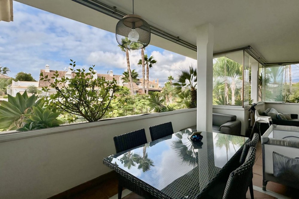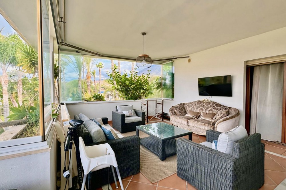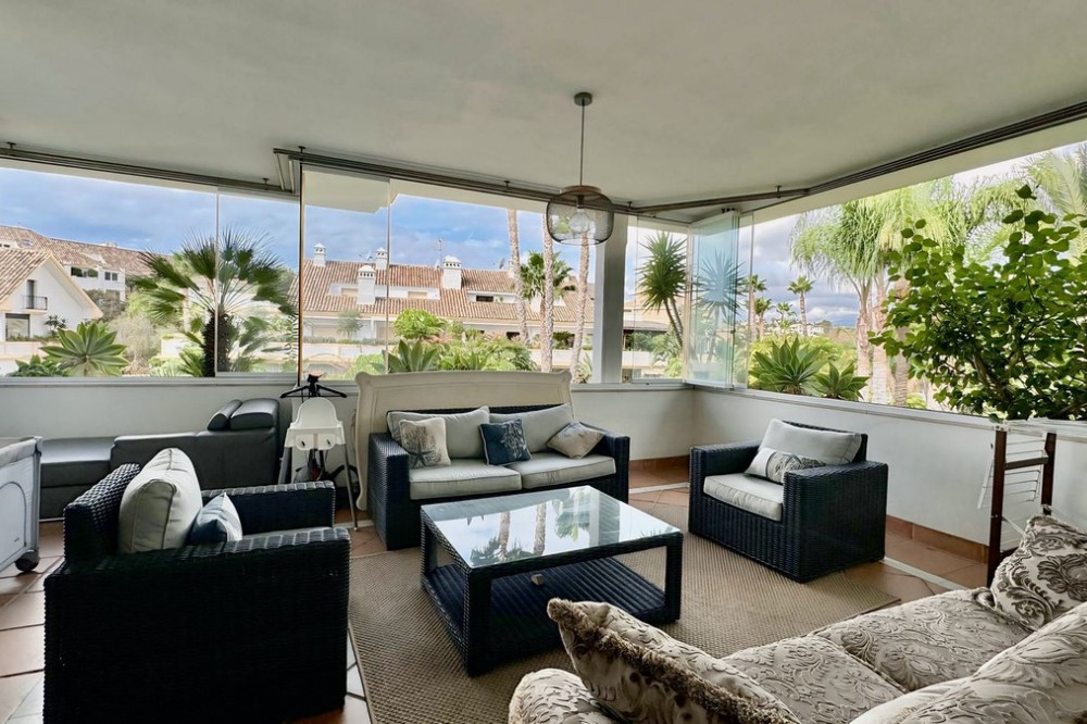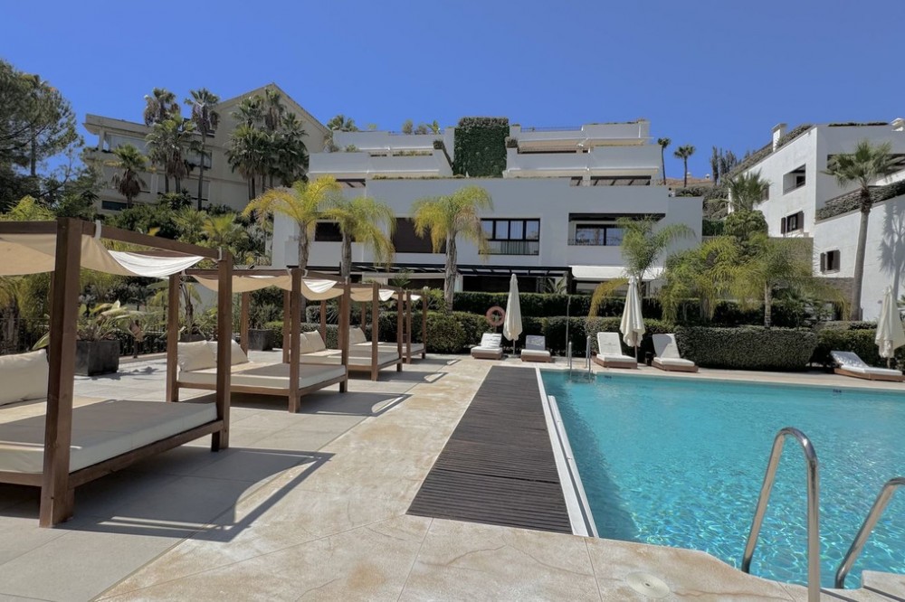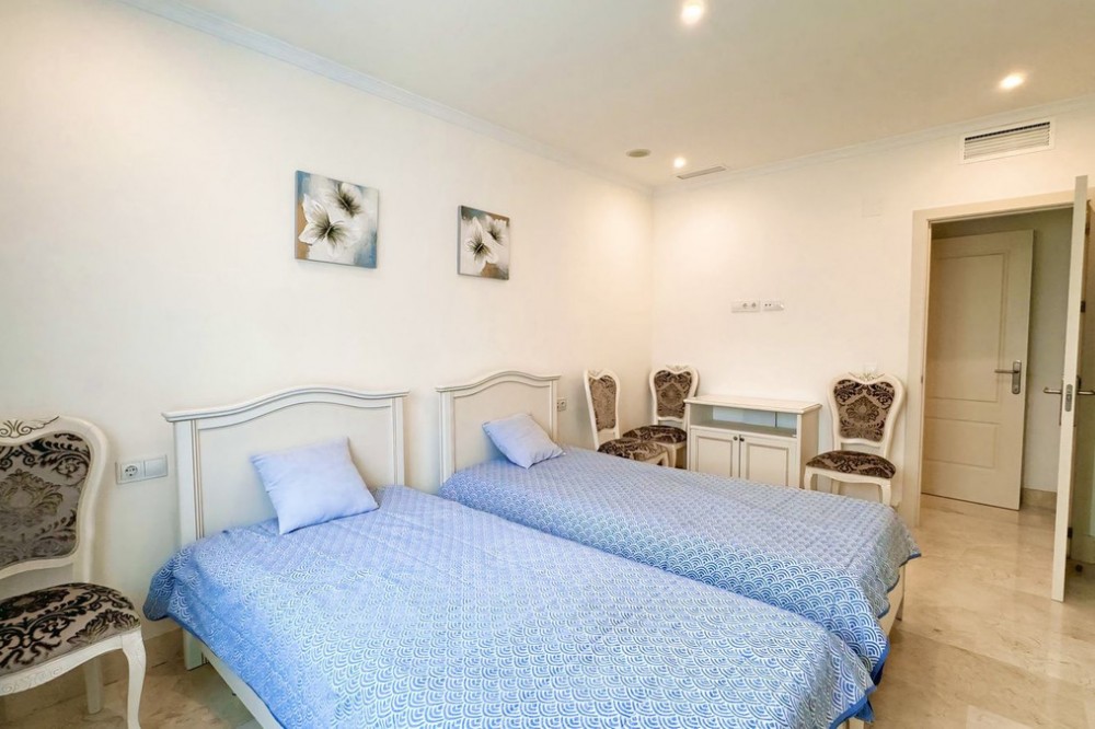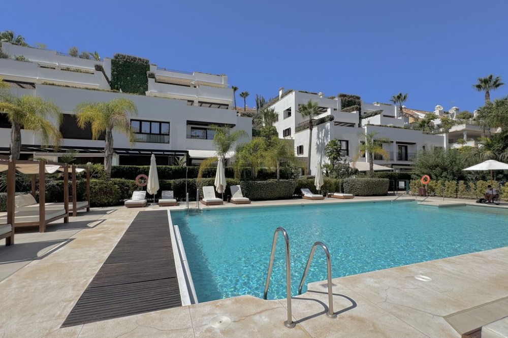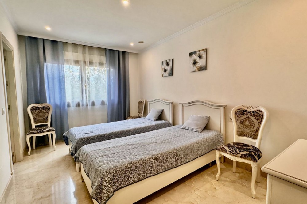 - Ruim appartement op de eerste verdieping | Marbella Golden Mile Dit uitzonderlijke appartement op de eerste verdieping, gelegen in de prestigieuze, afgesloten woonwijk Lomas del Rey, is een toonbeeld van het allerbeste op het gebied van hedendaags mediterraan wonen. Het appartement is vakkundig gebouwd volgens de hoogste specificaties en elk element is met uiterste zorg ontworpen – van de architectonische afwerking tot de doordachte indeling van de royale binnenruimtes. De indeling van de woning kenmerkt zich door een ruime, open keuken met eethoek, naast een aparte woonkamer die naadloos overgaat in een groot terras via kamerhoge glazen wanden. Natuurlijk licht stroomt door het hele huis en creëert een sfeer van zeldzame lichtheid en ruimte. De entreehal leidt intuïtief door de woning: rechts de belangrijkste ontvangstvertrekken; rechtdoor een privécorridor met een gastentoilet en een fraai ingerichte gastensuite met inloopkast; en links de royale master suite – een serene oase met eigen inloopkast en exclusieve toegang tot een privéterras. Lomas del Rey is een vooraanstaand luxe wooncomplex dat bewoners 24-uursbeveiliging, prachtig aangelegde, volgroeide tuinen en vier buitenzwembaden biedt, waarvan er één verwarmd is – een ambiance die de afzondering en verfijning van een privéresort oproept. De wijk geniet een benijdenswaardige locatie, direct naast de iconische Puente Romano en de Lomas de Marbella Club, op slechts een steenworp afstand van de restaurants van wereldklasse, boetieks en culturele voorzieningen van de Marbella Golden Mile – een van de meest gewilde en rustige adressen aan de Costa del Sol. De wijk is uitstekend bereikbaar via de snelweg AP-7, en de internationale luchthaven van Málaga ligt op ongeveer 57 kilometer afstand.