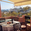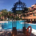 - Met genoegen presenteren wij dit fantastische appartement met 3 slaapkamers op de 3e verdieping, gelegen op het zuidwesten in de prestigieuze wijk Golden Mile in Marbella. Het appartement bevindt zich vlakbij het beroemde Puente Romano Hotel Resort en op loopafstand van het strand en het centrum van Marbella. Het complex is beveiligd met een poort en bewaking. De accommodatie is licht en ruim en biedt een grote woon-/eetkamer, een volledig uitgeruste keuken met een aangrenzende bijkeuken. Er zijn 3 badkamers, allemaal voorzien van een douche. Er zijn drie tweepersoonsslaapkamers, waarvan de hoofdslaapkamer een complete en-suite badkamer heeft met bad en douche. De kamer heeft dubbele glazen openslaande deuren naar een terras dat, dankzij de ligging op het westen, van de middagzon geniet. Er zijn nog twee tweepersoonsslaapkamers met voldoende opberg-/kastruimte. In dit bijgebouw bevindt zich nog een badkamer met een aparte douchecabine. Vanuit de woonkamer leiden grote glazen schuifdeuren naar een ruim terras waar u kunt genieten van een prachtig uitzicht op zee. Er is voldoende ruimte om buiten te dineren, te barbecueën en te ontspannen terwijl u geniet van de zuidwestelijke zon. De woning beschikt over airconditioning (warm en koud). Er zijn momenteel plannen om van deze woning een woning met 4 slaapkamers te maken, wat eenvoudig te realiseren is. Binnen het complex is er een gemeenschappelijke parkeerplaats, een groot, vrij toegankelijk zwembad, een fitnessruimte, een sauna en een jacuzzi, allemaal gelegen in een prachtig aangelegde gemeenschappelijke tuin met exotische planten en struiken. Deze tuinen worden perfect onderhouden dankzij de goed georganiseerde en georganiseerde gemeenschap.