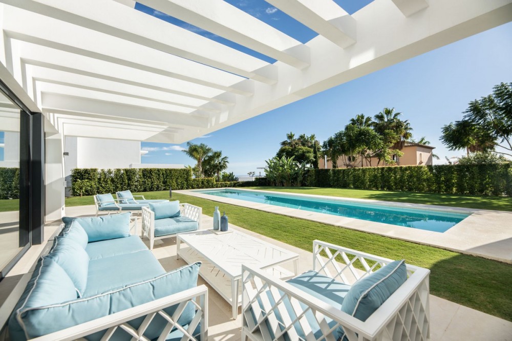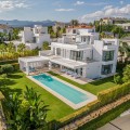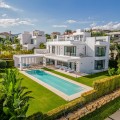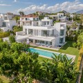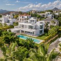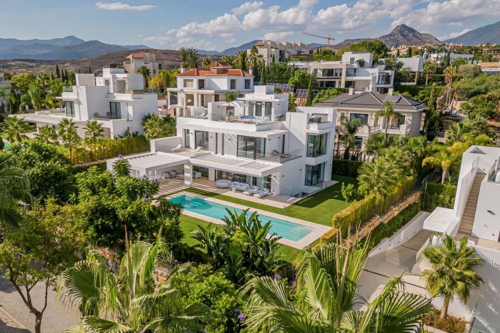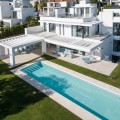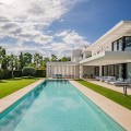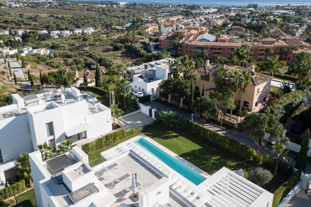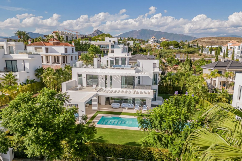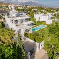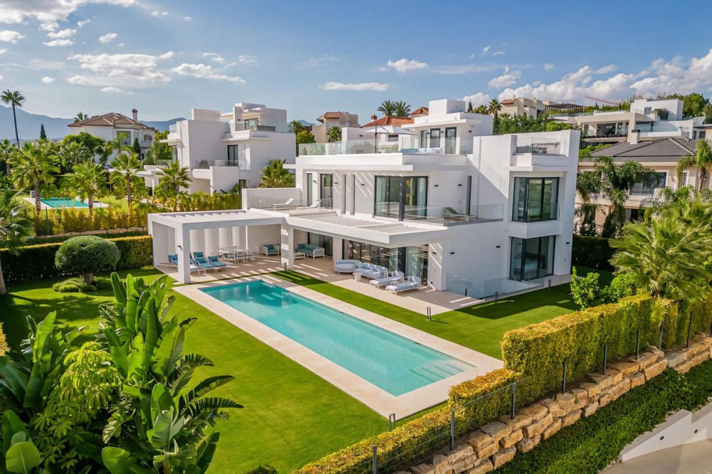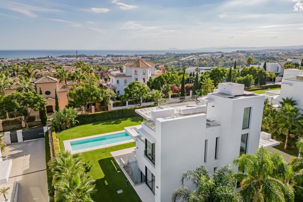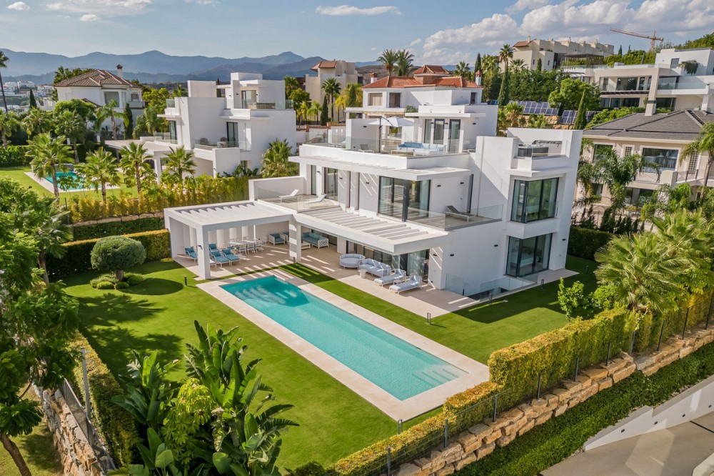 - Live the dream in this meticulously crafted 5-bedroom contemporary masterpiece situated within the prestigious Los Flamingos gated community, Benahavis. This brand new property offers unparalleled luxury, breathtaking panoramic views, and the ultimate in contemporary living. Unwind in spacious en-suite bedrooms spread across four levels, each designed for ultimate comfort and privacy. The open-plan living area on the ground floor seamlessly connects with the pool terrace, inviting the Mediterranean vistas right into your home. On the first floor, the master suite with a private terrace awaits, complemented by 2 further en-suite bedrooms.Ascend to the rooftop terrace and be mesmerised by spectacular uninterrupted sea views stretching to Marbella and La Concha, Morocco, and Gibraltar. Descend to the basement level sanctuary and discover a haven of relaxation – a fifth en-suite bedroom and a state-of-the-art spa with a gym, Finnish sauna, steam room, shower, and toilet. This haven even offers independent access to the pool via a private staircase.