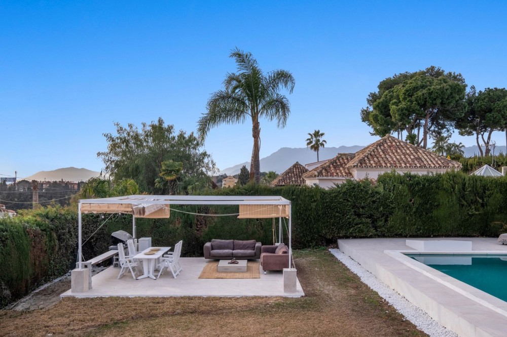 - – A Private Oasis in Marbella - Exclusive villa in Marbella located just 5 minutes walking from the beach, in a privileged area that combines tranquility, privacy, and proximity to the sea. The property offers 273 m² built and is currently distributed over two floors, with the possibility of adding an additional level, providing excellent potential for expansion and value appreciation. Inside, the villa features four spacious and very bright bedrooms and two full bathrooms. The living and dining area is large and filled with natural light, thanks to its excellent south-facing orientation, allowing sunlight throughout the day and offering open and panoramic views. The fully equipped kitchen also offers the possibility of being opened to the living room in the future, creating a modern open-plan space. The property enjoys three private terraces, two of them covered, as well as a pleasant chill-out terrace and a solarium of approximately 50 m², perfect for relaxing or creating an additional leisure area. Outside, the villa features a private garden with a Balinese bed, a private swimming pool, and a BBQ area, ideal for enjoying the Costa del Sol lifestyle all year round. The villa also includes a private garage area and sits on a plot with enough space to build a private paddle tennis court in the future. Overall, this is a bright and spacious property with great potential for expansion, ideal as a permanent residence, holiday home, or investment in one of the most sought-after areas of Marbella.