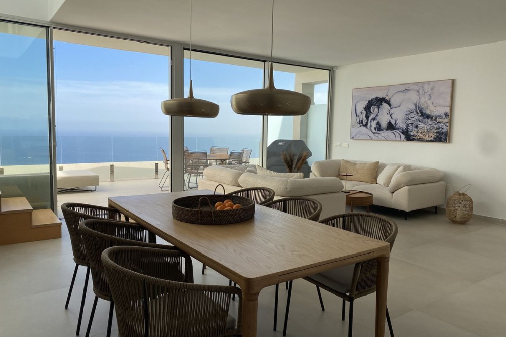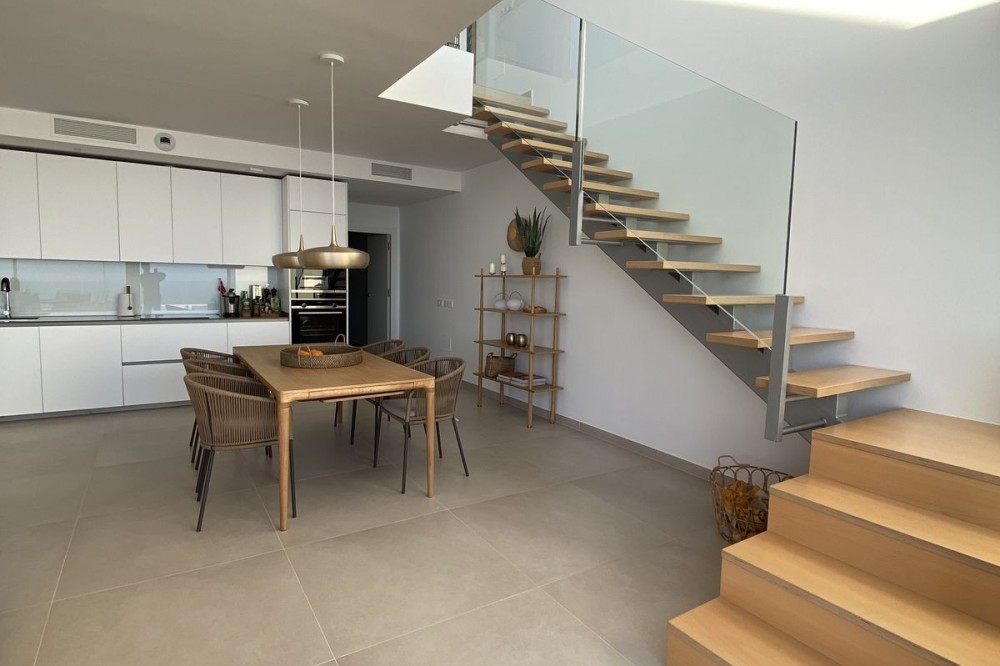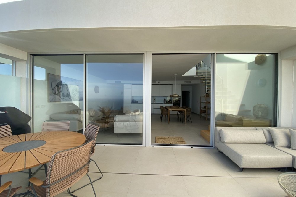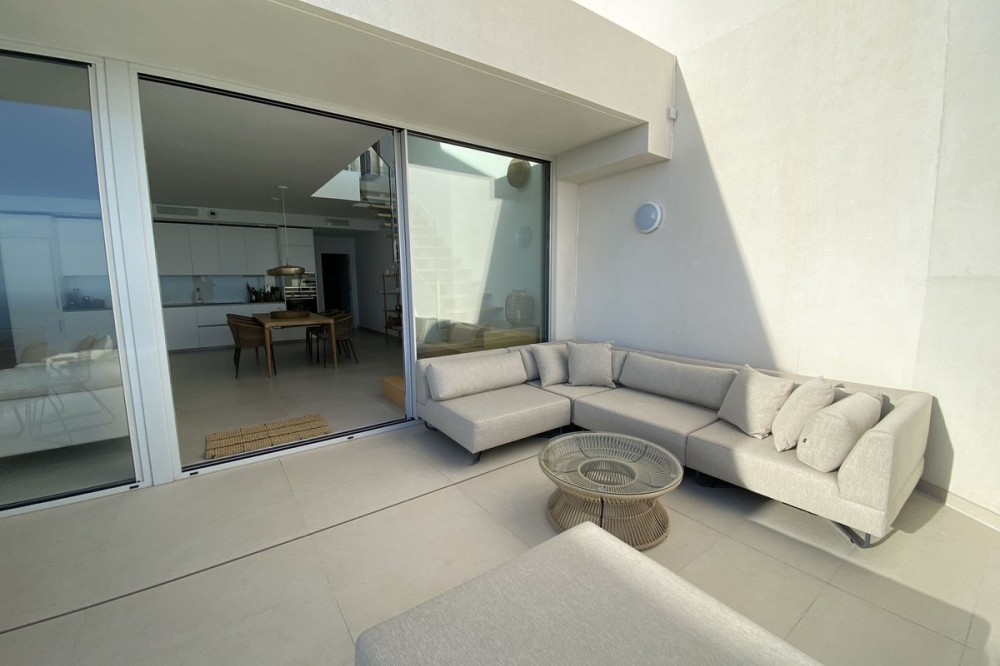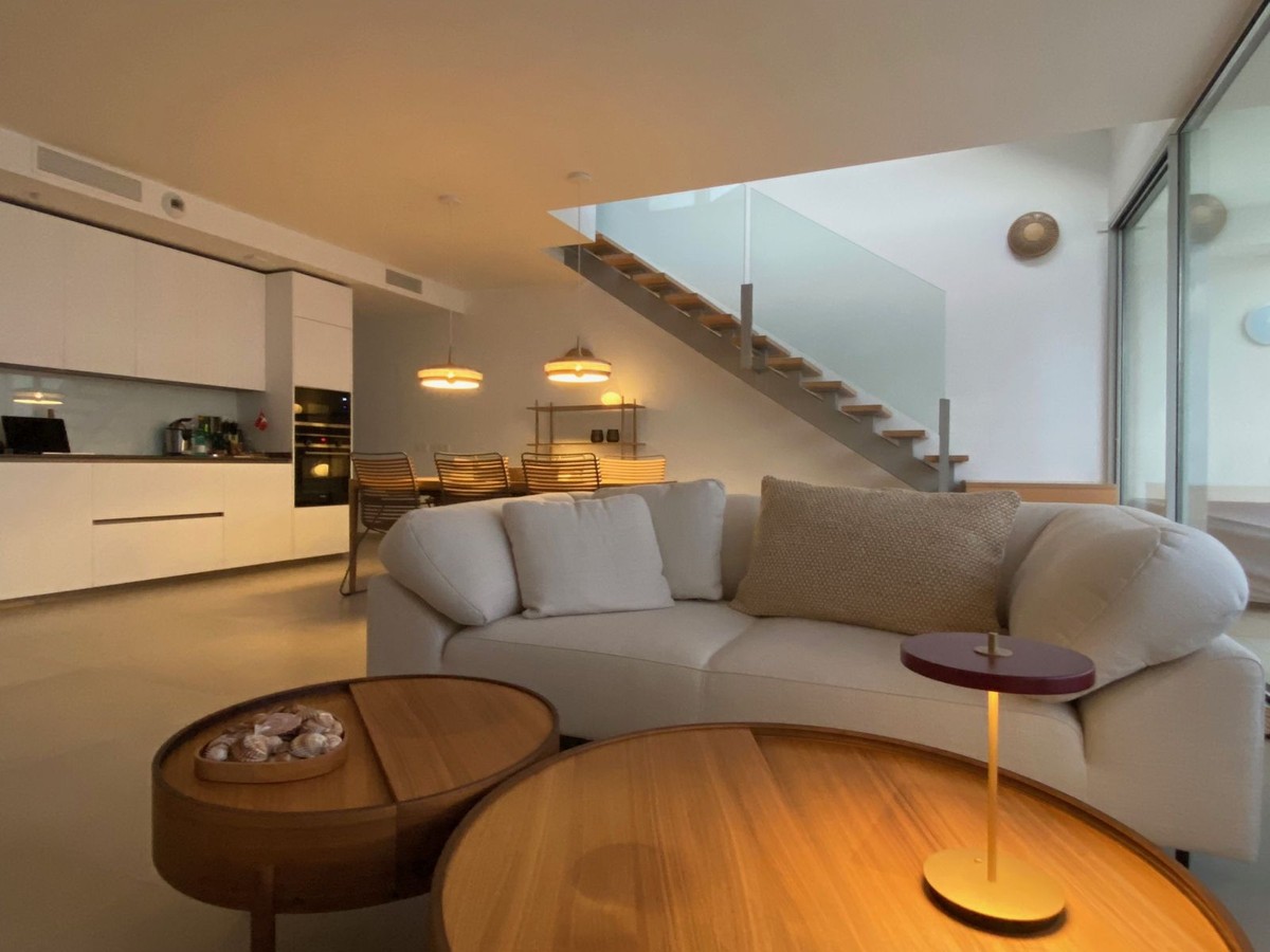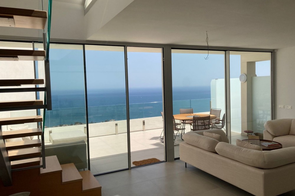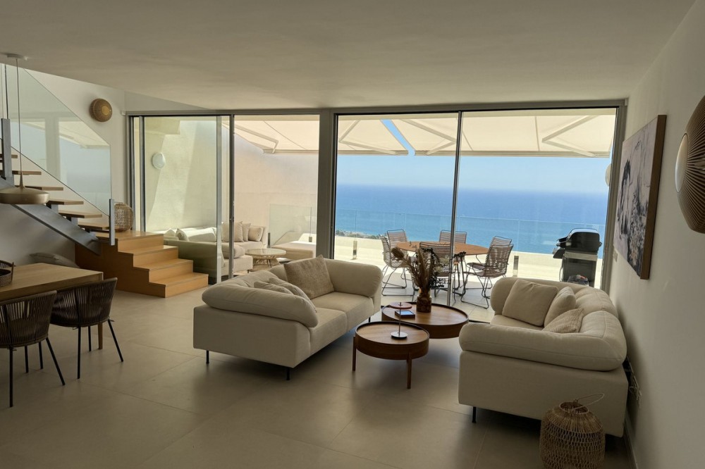 - Spectaculair duplex penthouse met panoramisch uitzicht op zee in het exclusieve Stupa Hills, Benalmádena Dit uitzonderlijke duplex penthouse is gelegen in de prestigieuze urbanisatie Stupa Hills in Benalmádena, naast de iconische boeddhistische stoepa, en biedt een adembenemend uitzicht op zee, veel natuurlijk licht en een elegant, eigentijds design. Dankzij de grote ramen van vloer tot plafond en de brede oriëntatie baadt de woning de hele dag in natuurlijk licht en geniet u van een panoramisch uitzicht over de Middellandse Zee. Bij binnenkomst in de woning wordt u verwelkomd door een elegante hal die uitkomt op een ruime en lichte open woon- en eetkamer. De stijlvolle, Italiaans ontworpen keuken is volledig ingericht en uitgerust met hoogwaardige apparatuur, waaronder een omgekeerde osmose waterfilter. Grote schuiframen vanuit de woonkamer geven direct toegang tot een royaal terras waar u kunt genieten van een prachtig uitzicht op zee en het buitenleven. Op deze verdieping bevinden zich tevens twee fraai ingerichte slaapkamers, elk met elegante, Italiaans ontworpen inbouwkasten met schuifdeuren, en een stijlvolle badkamer. Een opvallende, moderne trap van metaal, hout en glas leidt naar de bovenverdieping, waar de indrukwekkende master suite zich bevindt. Hier vindt u een ruime slaapkamer met directe toegang tot een tweede privéterras met spectaculair panoramisch uitzicht op zee. De master suite beschikt tevens over een inloopkast, een luxe en-suite badkamer en een praktische was- en droogruimte. De woning is voorzien van een geavanceerd aerothermisch systeem en individuele klimaatregeling (warm en koud) per kamer, die allemaal worden aangestuurd door een slim domoticasysteem voor maximaal comfort en efficiëntie. Het appartement beschikt tevens over twee ondergrondse parkeerplaatsen en een privéberging van 8 m². Bewoners van Stupa Hills genieten van toegang tot een beveiligde, afgesloten woongemeenschap met eersteklas faciliteiten in resortstijl, waaronder twee buitenzwembaden, een volledig uitgerust fitnesscentrum, een verwarmd binnenzwembad en zowel een Finse als een Turkse sauna. De locatie is werkelijk onovertroffen. Een supermarkt bevindt zich direct naast de woonwijk, terwijl het nabijgelegen winkelcentrum Higuerón, met een supermarkt, apotheek, restaurants en diverse winkels, op slechts enkele minuten afstand ligt. Dankzij de uitstekende vervoersverbindingen is de snelweg A-7 gemakkelijk te bereiken, waardoor reizen langs de Costa del Sol moeiteloos verloopt. Het strand ligt op slechts 8 minuten rijden en het charmante Andalusische dorp Benalmádena Pueblo is in slechts 5 minuten te bereiken. Dit is een unieke kans om eigenaar te worden van een luxueus penthouse in een van de meest gewilde complexen aan de Costa del Sol, waar modern comfort, een adembenemend uitzicht en een uitzonderlijke levensstijl samenkomen. Deze accommodatie beschikt over een toeristenvergunning.