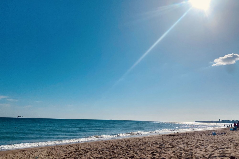 Uitzicht: zee, bergen, strand, haven, panoramisch