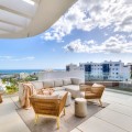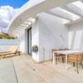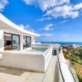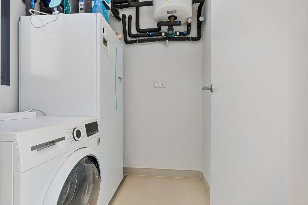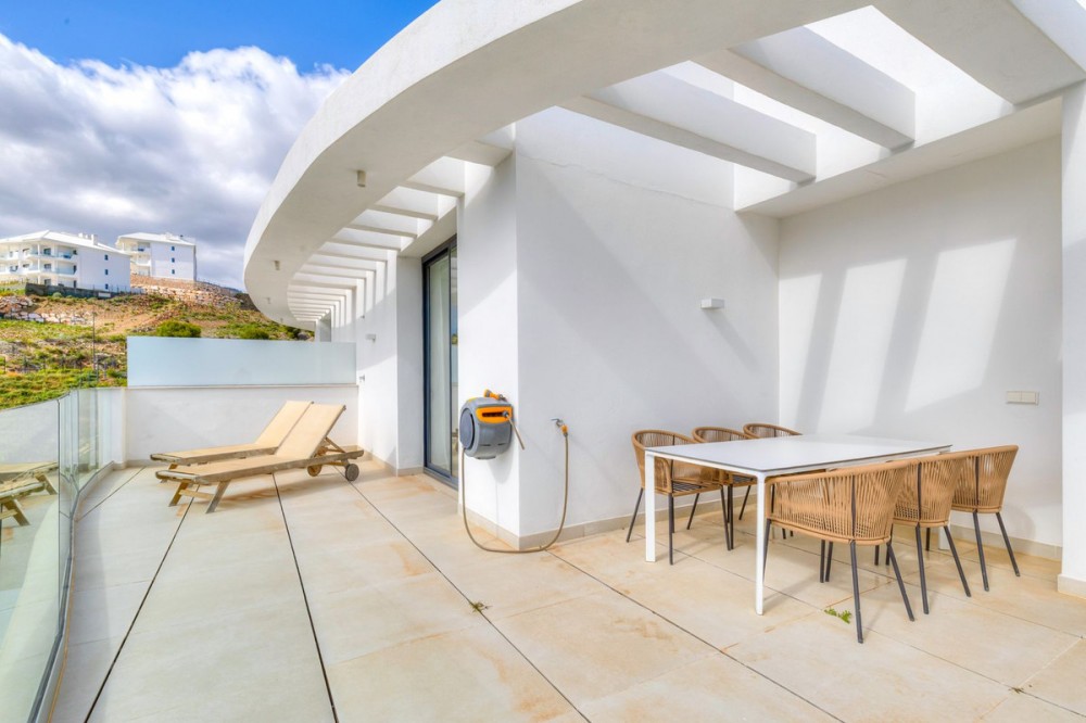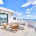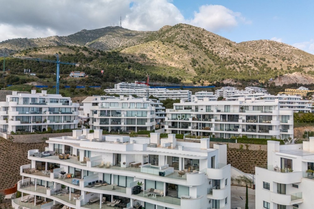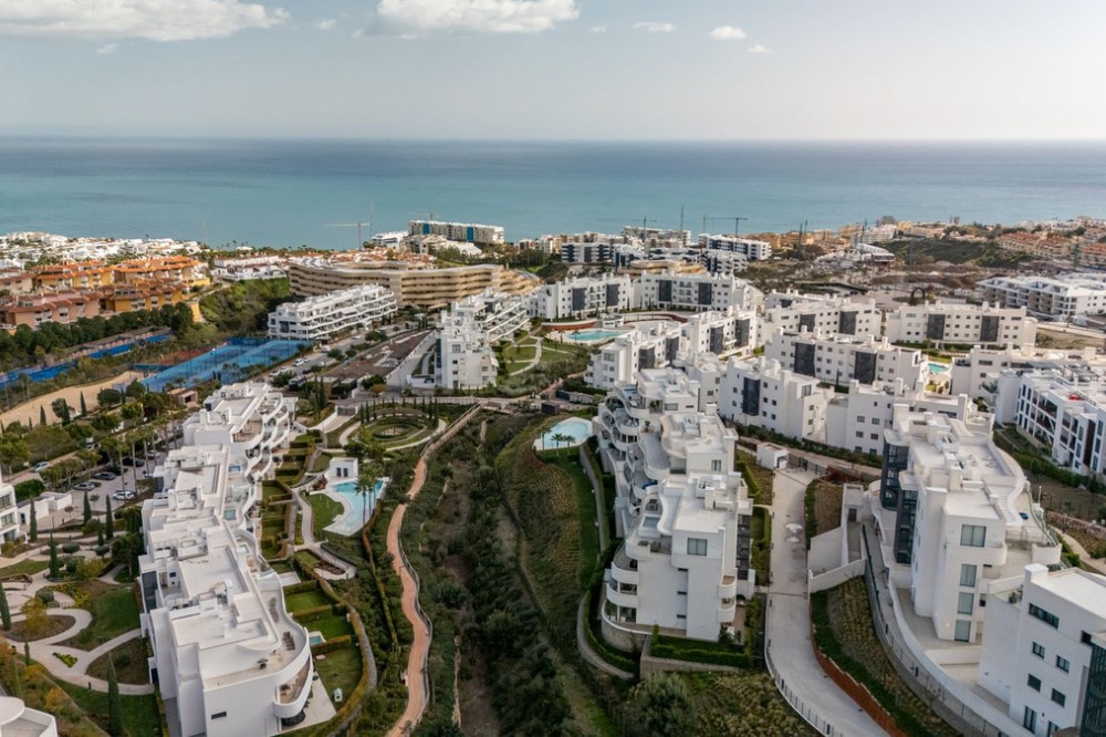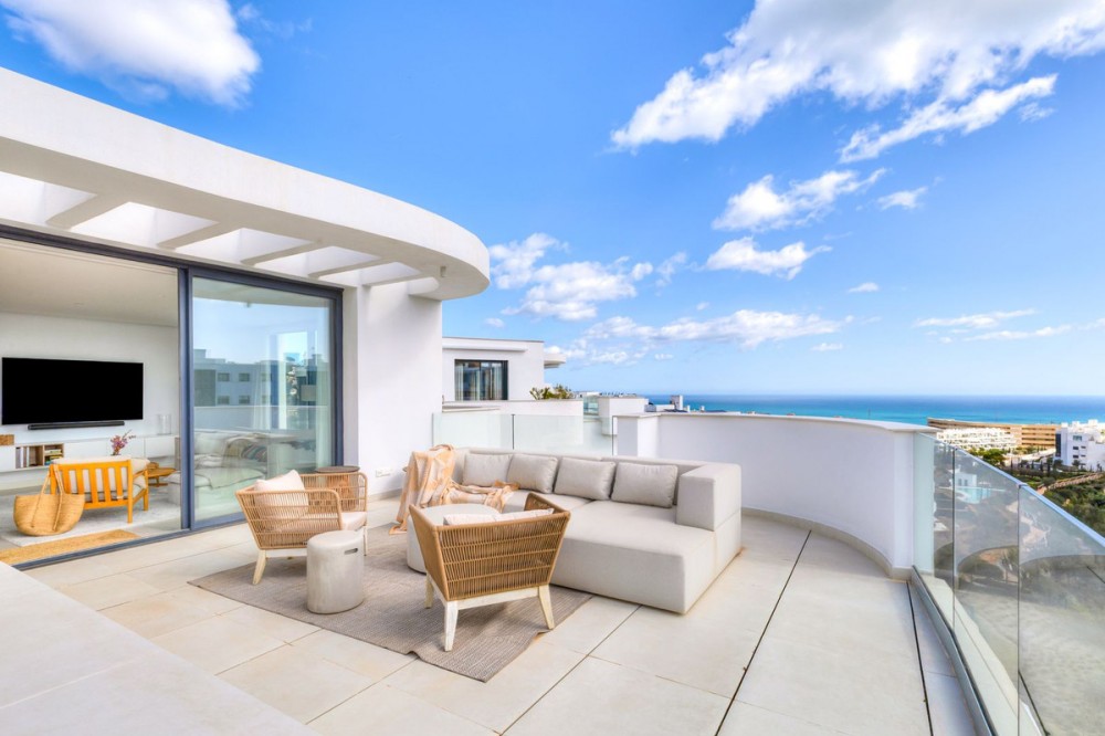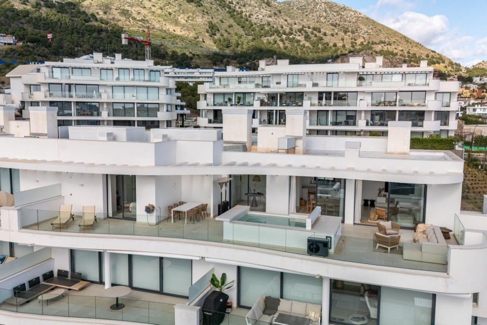 - Luxury Penthouse with Panoramic Mediterranean Views – Southwest Orientation Welcome to refined coastal living in the prestigious El Higueron area of Fuengirola. This exclusive top-floor penthouse, completed in 2022, offers a rare blend of contemporary architecture, premium finishes, and unobstructed panoramic views across the residential area to the Mediterranean Sea. Its highly sought-after southwest orientation ensures abundant natural light and spectacular sunsets year-round. The intelligently designed layout offers approximately 156 m² of interior living space, featuring three spacious bedrooms. The elegant master suite includes a large walk-in wardrobe and a private en-suite bathroom. In addition, there is a guest bathroom and a separate guest WC, providing both comfort and practicality. Direct elevator access from the underground garage to the apartment enhances everyday convenience and security. The underground garage includes two generous parking spaces of approximately 30 m² each, one equipped with an electric vehicle charging station, as well as a private storage room of approximately 11 m². The bright living room opens seamlessly onto an impressive 103.60 m² private rooftop terrace — a true Mediterranean retreat. Here you will find a heated private swimming pool, sun loungers, a stylish lounge area, and an outdoor dining space. This is the perfect setting to enjoy both sunrise and sunset in complete privacy. Additionally, the apartment features a smaller 12 m² balcony. The modern open-plan kitchen is fitted with high-end appliances and includes an osmosis water filtration system, creating a functional yet elegant space ideal for both everyday living and entertaining. Residents benefit from two saltwater community pools and a peaceful, high-quality environment within a gated and guarded community offering 24/7 security. This penthouse is more than just a property — it is a lifestyle. Its prime location, modern design, recent construction, and exceptional outdoor spaces make it a truly outstanding home on the Costa del Sol. The apartment is sold fully furnished.