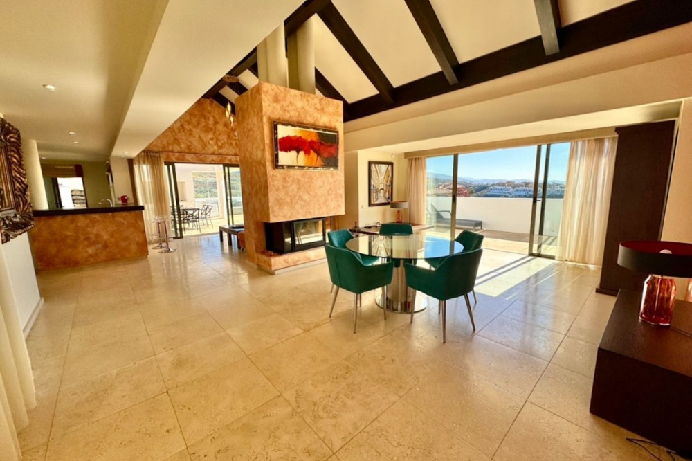 - Luxury Penthouse with sea view, located in gated community "Alanda Los Flamingos", Benahavis. Apartment has 3 beds & 3 baths, guest toilet. Spacious living area with fireplace, fully equipped kitchen. From the living area there is an access to the large terrace with panoramic golf and Mediterranean coastal views, Gibraltar. Terrace has a BBQ area and different chilling areas. 2 underground parking spaces and 1 storage are included in the price. Gated complex has 2 swimming pools with chilling area, beautiful garden. Complex is located close to Hotel 6* Villa Padierna and all amenities, frontline to the prestigious 18 hole golf course Los Flamingos Golf. 10 min drive from Marbella, 5 min drive from sandy beaches.