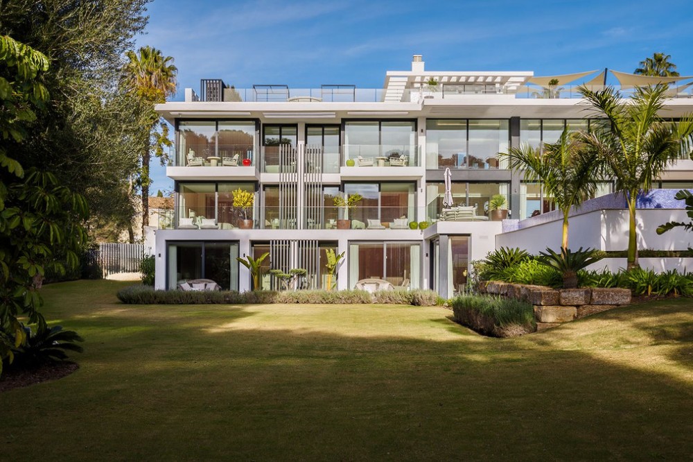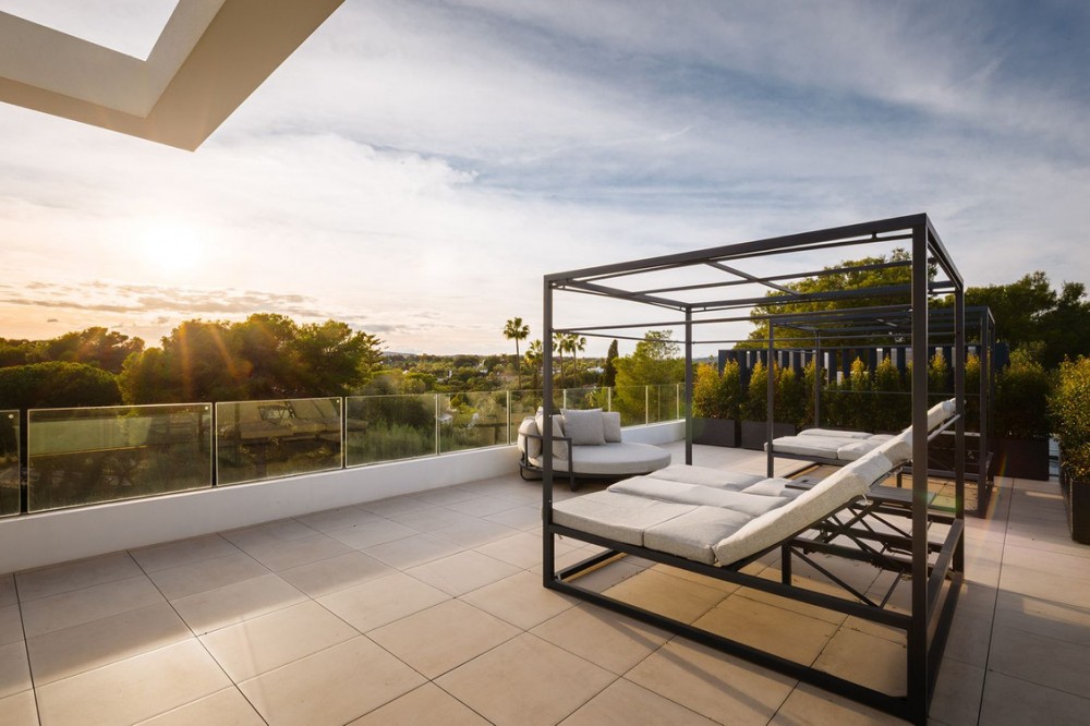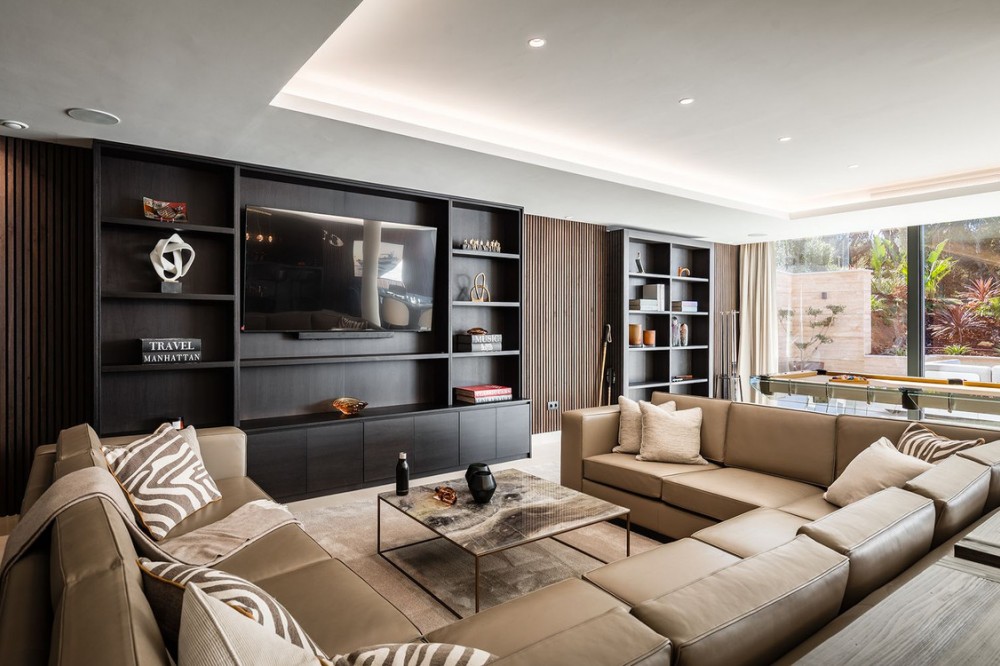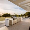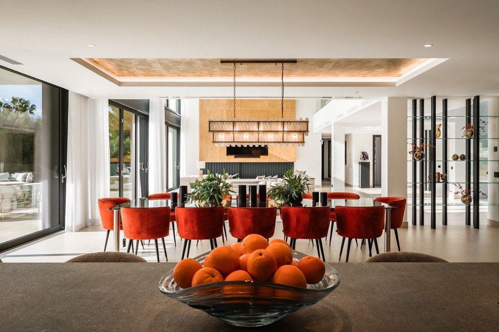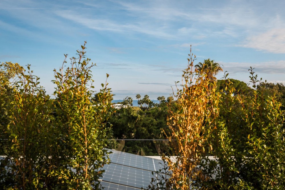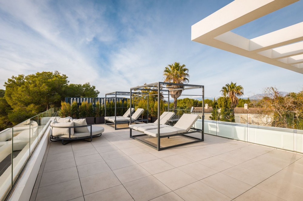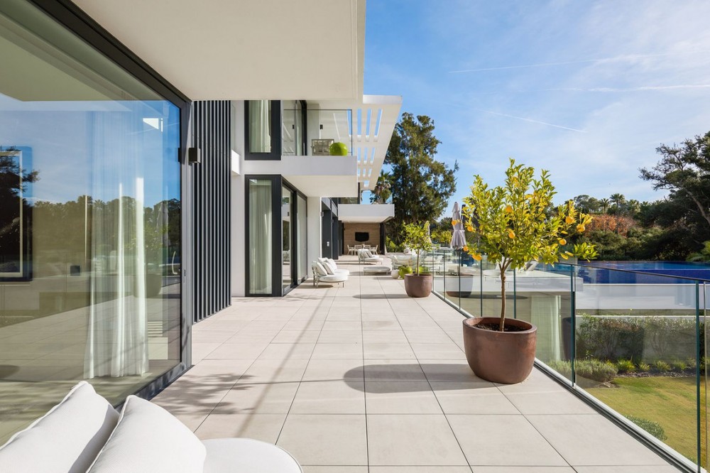 - Stunning Villa in Sotogrande! Beautiful contemporary villa set in the heart of Sotogrande’s prestigious Kings and Queens enclave, just moments from the beach, marina and world-class golf. Set on a generous, landscaped plot, the home blends clean modern architecture with light-filled open spaces designed for relaxed Mediterranean living. Double-height interiors, seamless indoor–outdoor areas and a stunning kitchen make it ideal for both everyday life and entertaining. With seven en-suite bedrooms, rooftop terraces, wellness areas and a serene infinity pool, it offers privacy, comfort and effortless luxury in one of Sotogrande’s most sought-after locations. Thoughtfully laid out for both daily comfort and social gatherings, the home features multiple indoor and outdoor living areas. At its heart is a fully equipped Gaggenau kitchen with a central island, complemented by a separate prep kitchen and an adjoining outdoor BBQ space—perfect for entertaining. The seven bedrooms each come with en-suite bathrooms, ensuring both privacy and luxury for residents and guests. Additional features enhance the home’s appeal, including a dedicated wellness area with a sauna and steam room, a games room, and a private elevator that adds both convenience and accessibility. The rooftop solarium offers a stunning setting for relaxation, complete with a BBQ area, shower, and an open-air lounge boasting panoramic views—ideal for sun-soaked afternoons or evening gatherings. Outside, a sleek infinity pool is framed by lush, mature landscaping, creating a serene, resort-like ambiance. The large private garage provides secure parking for several vehicles, further underlining the home’s practical luxuries.