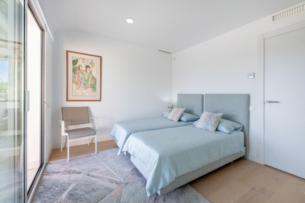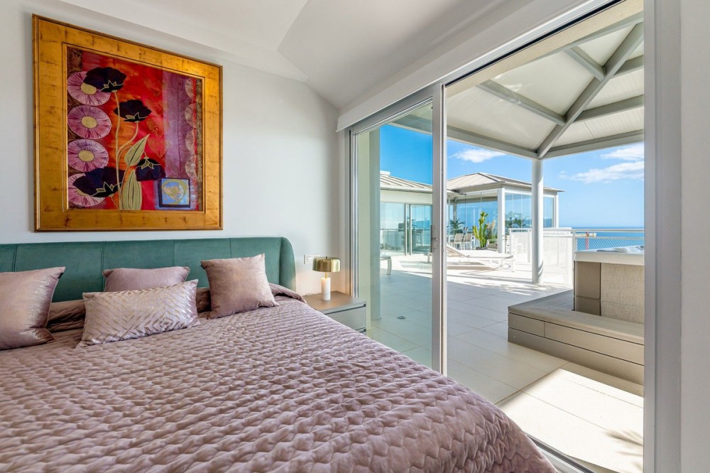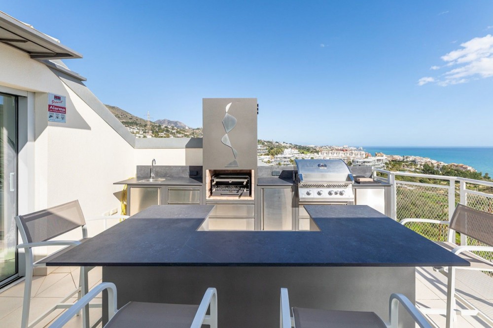 - One of the most luxurious penthouses is for sale in Higueron Resort 307sq m of sea and mountain views, luxury and pleasure. From a covered entrance, beside the elevator, with views of the Sierra Nevada mountains and the Mediterranean sea, you enter this opulent penthouse through a bespoke steel and glass covered vestibule between 2 security doors leading to an internal entrance with a powder room. The bedroom layout offers three en-suite rooms, including a large and sumptuous master suite. The social heart of the home is a vast, light-filled living and dining area, surrounded by two glass walls and offering breathtaking views. It features a modern Italian kitchen designed for minimalism, using concealed pocket doors to create a streamlined, clutter-free environment. The expansive terrace is seemingly integrated with the indoor area, with an outdoor kitchen and bar, a covered glass dining area completed with a lavish spa/jacuzzi and shower under roof. Facts & Details Year Built: 2018 | Total renovation: 2024 Surfaces: 171.56m² (Interior) + 135.44m² (Terraces) Finishes: High-end, porcelain tiles throughout. Living Area: Expansive open-plan living/dining with opening glass walls. Added Architectural Features: 12m2 custom glass canopied vestibule. 6m2 glass canopied laundry area. Outdoor kitchen and bar with fireplace. 25m2 opening glass walled outdoor dining room & sitting area. Climate: Air-Zone cooling/heating system (independent zones). Security: Double security door vestibule + the most advanced alarm system on the market. Parking & Storage: 2 underground private spaces beside large storage room. Communal Areas: 2 swimming pools (adults and children). Exclusive Higuerón Amenities Luxury 5 star hotel with Michelin Star restaurant. Extensive Sport & Wellness Club. Tennis academy with 5 courts. Paddle: 10 courts. Basketball court and training area. Most complete fitness areas (over a dozen training activities from pilates to boxing). A 24hr state of the art gym. 4 pools. Spa – hydrotherapy circuit, sauna, Turkish bath and a complete spa treatments. Beach club with restaurant, pool and beach lounge areas. All areas serviced by a complimentary shuttle. Key Distances: Málaga Airport (AGP): ~18 km (15-20 min drive). Beach: ~1 km. Benalmádena Pueblo: ~3 km. Train Station: < 5 min (direct link to the airport and city center). Nearby Cities: Fuengirola (10 min), La Cala de Mijas (20 min), and Marbella (25 min). Contact for a private viewing. Strict financial pre-qualification is required.