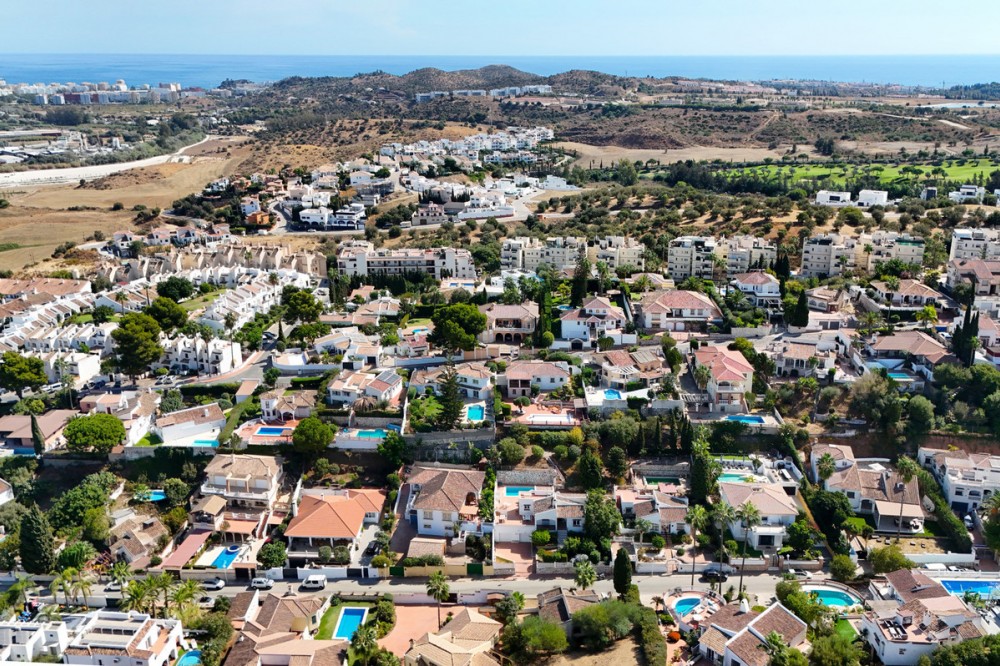 - **Beautiful One-Level Villa with Private Pool – Fuengirola / Cerros del Águila** Welcome to this charming and well-maintained villa located in the peaceful and sought-after urbanisation **Cerros del Águila** – just a short drive from golf courses, padel clubs, the Miramar shopping centre, Fuengirola’s beaches, and the brand-new public park opening less than 1 km from the property. Málaga Airport is only 25 km away, making this the ideal location for both permanent living and holiday escapes. **The Property** Set on a quiet street with very little traffic, this bright and inviting villa is all on one level and offers: * A spacious open-plan living and dining area with a wood-burning fireplace and direct access to sunny terraces and the pool area * A brand-new Danish kitchen fitted with a granite worktop, offering both style and functionality * Underfloor heating in the kitchen and both bathrooms – ideal for comfort in all seasons * New flooring throughout the house * New high-quality exterior doors and modern double-glazed windows with energy-efficient passive glass * Three generously sized bedrooms with built-in wardrobes, including a master bedroom with en-suite bathroom * Two bathrooms in total – one with a bathtub and one with a walk-in shower * Hot and cold air conditioning in the living room and all bedrooms * A private swimming pool surrounded by sun-drenched terraces and an outdoor shower * An outdoor kitchen area – perfect for al fresco dining and entertaining * A rooftop terrace with stunning panoramic views of the surrounding mountains * A large, mature garden with various fruit trees * Two garages and a fully fenced plot for added privacy and security **Excellent Investment Potential** This villa is not only a wonderful home – it also represents a strong investment opportunity. Short-term holiday rentals are permitted in Cerros del Águila. This is a rare find – combining quality, privacy, and proximity to everything the Costa del Sol has to offer. Whether you’re looking for a stylish full-time residence, a holiday getaway, or a smart investment, this villa ticks every box. **Contact us today to arrange a viewing !**
