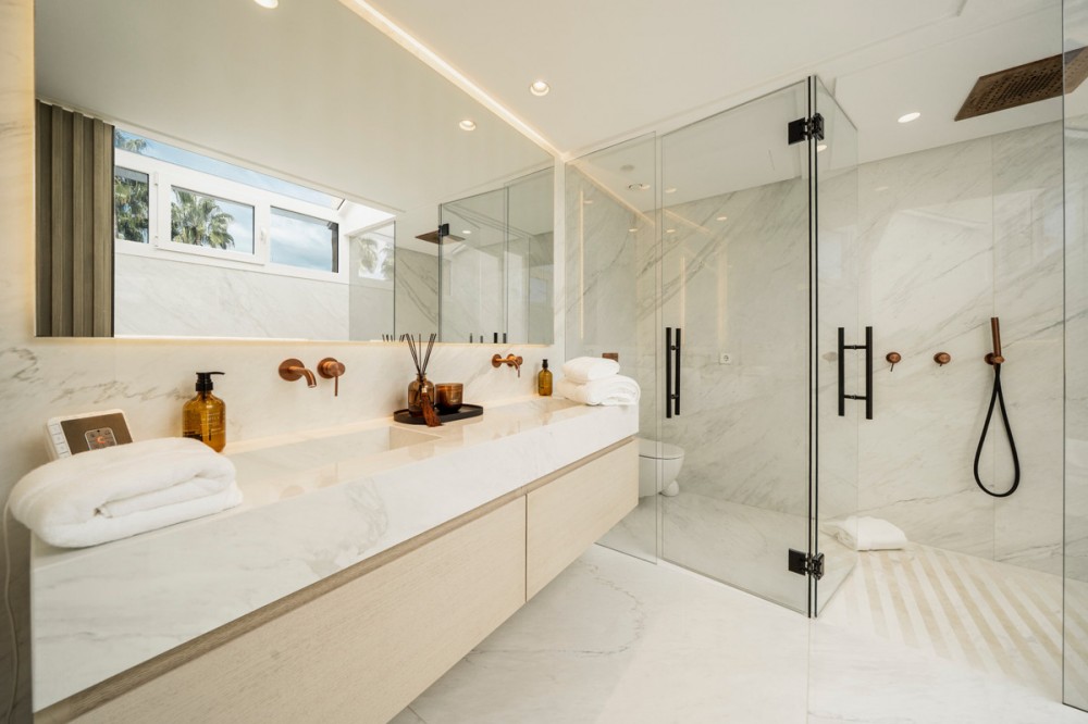 - Please note: For us to provide You with our best possible service, please leave your email and phone number when sending your enquiry. Thank you Welcome to this stunningly renovated 3-bedroom duplex penthouse, where contemporary elegance meets coastal-inspired comfort. Refurbished to the highest standards, the home features beautiful oak flooring throughout, including striking herringbone details that bring timeless sophistication and warmth to every space. The penthouse offers three spacious en-suite bedrooms, each designed with serene Mediterranean tones for a calming retreat. The master bedroom boasts a generous walk-in closet, providing ample storage and a luxurious dressing experience. The open-plan living and dining area is bathed in natural light and flows seamlessly onto large terraces, perfect for sunbathing, entertaining, or enjoying tranquil sunsets. The modern kitchen is fully equipped with top-of-the-line appliances, and the living room is furnished with high-quality pieces, creating a refined yet inviting atmosphere. Set within a gated community with 24-hour security, residents enjoy peace of mind and exclusivity. The community also features three beautifully maintained swimming pools, spacious landscaped gardens, and tennis and paddle courts—all just a short stroll from nearby golf courses. With its prime location, exceptional amenities, and elegant interiors, this duplex penthouse is a rare opportunity to enjoy luxury living in one of the area’s most sought-after communities. OUR AGENCY IS REDEFINING THE REAL ESTATE EXPERIENCE WITH A DEDICATION TO SEAMLESS, CLIENT-CENTRIC SERVICE. Our mission goes far beyond property transactions — we deliver a complete, elevated journey into property ownership, designed to make every step as smooth and stress-free as possible. With our specialized Visa support, we simplify international relocation by expertly handling the legal and administrative complexities for you and your family. To make your start in Spain even easier, we also offer complimentary N.I.E. assistance, removing bureaucratic obstacles and saving you valuable time. We understand that every investment matters. That’s why our collaborating mortgage brokerage team works tirelessly to secure the most competitive terms tailored to your unique financial profile — making your property dreams more attainable than ever. Our approach is clear and direct: you deal exclusively with us, without unnecessary intermediaries. This ensures a transparent, streamlined buying process. We also provide complimentary legal guidance to safeguard your investment and guarantee your interests are protected throughout. You benefit from exclusive access to premium listings, offered by our dedicated agents who possess deep market insight and access to off-market opportunities. This is not just about finding a property — it’s about creating a personalized experience that fits your lifestyle and long-term vision. We don’t just sell properties — we help you build your future, with care, clarity, and confidence. LET US MOVE YOU!