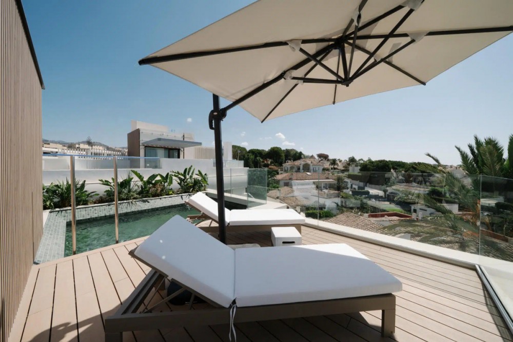 - New Development: Prices from €5,200,000 to €5,200,000. [Bedrooms: 4] [Bathrooms: 4] [Built size: 447m2]. Located on the beachfront in Marbella, this exclusive development also features elegant semi-detached villas designed to offer privacy, space, and exceptional quality in one of the most sought-after areas of the Costa del Sol. The villas combine contemporary architecture with premium materials and refined finishes, creating homes that are both sophisticated and comfortable. Spacious interiors connect seamlessly with outdoor areas, allowing residents to fully enjoy the Mediterranean climate. Each villa includes a private swimming pool and jacuzzi, creating a personal oasis for relaxation and leisure. Interiors feature large-format flooring, designer kitchens by Pedro Peña Design, and high-end Gaggenau appliances, all complemented by a powerful home automation system that controls the entire home. Residents also benefit from the development’s outstanding communal facilities, including the exclusive Social Club with SPA, indoor and outdoor gyms, coworking areas, and a spectacular infinity pool with panoramic sea and mountain views.