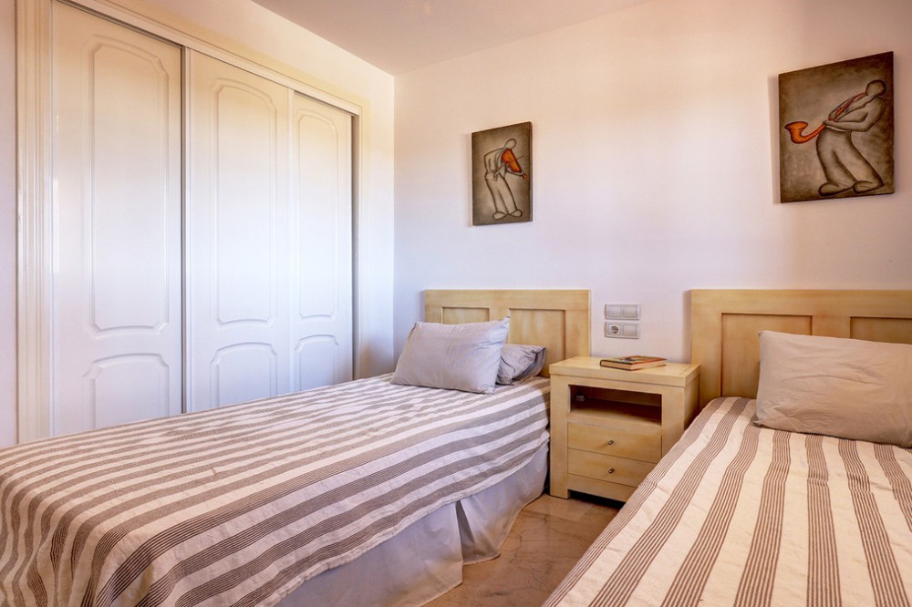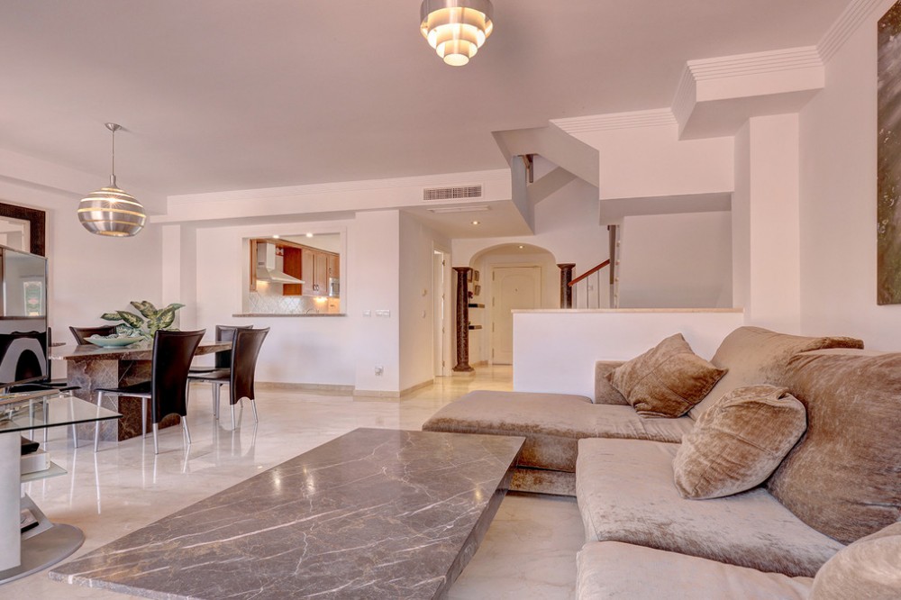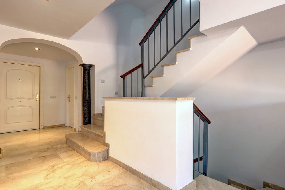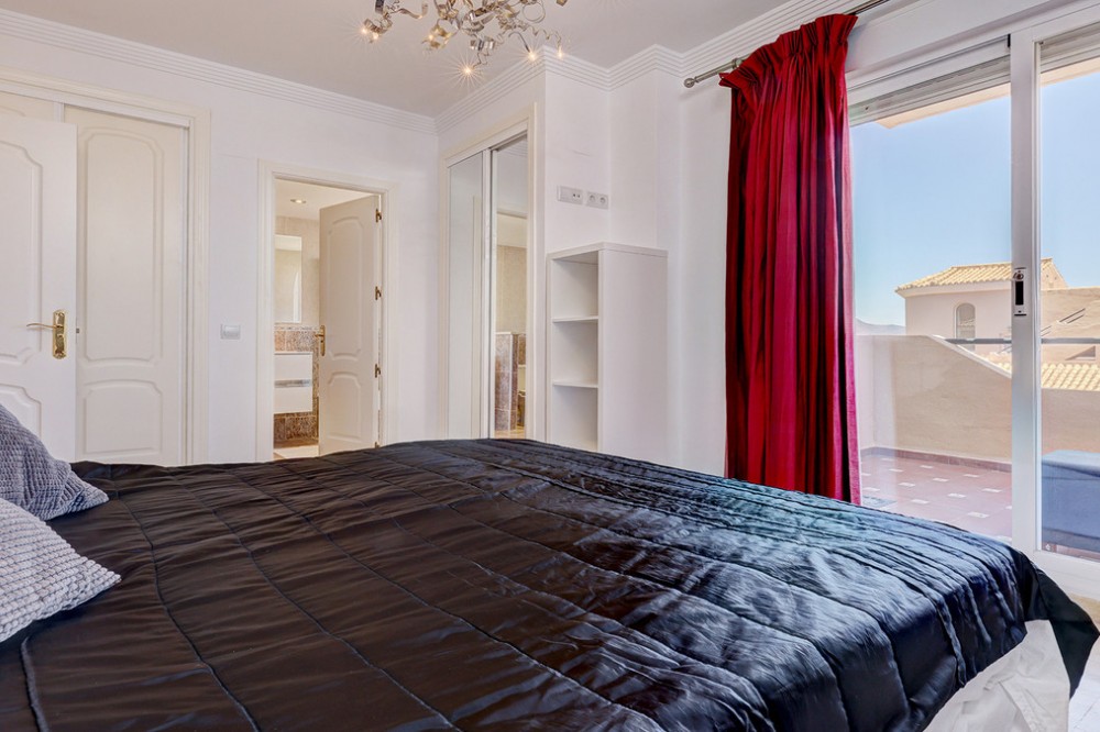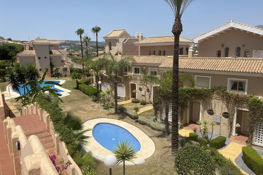 - Fabulous four-bedroom townhouse located in a mature and exclusive, gated residential complex, located in La Duquesa Golf. The complex has fabulous communal gardens, 4 communal swimming pools, and a playground. There are internal roads leading to Marina de la Duquesa, with its many bars, restaurants, and cafés, and to the lovely beaches. This property would make a wonderful family home. It is a bright and airy property with 4 good-sized bedrooms While originally a three-bed, the owners have added an additional double bedroom in the basement. It is built to top-quality specifications, with fully fitted wardrobes, hot and cold air-conditioning and marble floors throughout . The house has a lovely front garden. You walk through a gate and walk along a path to come to the front door. This ground floor is spacious and has a storage cupboard, guest toilet, a fully fitted kitchen, a lounge /diner and a fabulous terrace. The kitchen is fully fitted. The owners have made lovely glass balcony doors with electric blinds so that you can walk out of the kitchen straight onto the lovely lawn. The front of the kitchen has a large hatchway to the living / dining room so whilst a separate room, you still have that connection with the living area. There is a lovely open fireplace in the living room and glass balcony doors leading out to a stunning terrace - a fabulous spot to dine al fresco. The first floor is home to three double bedrooms and two bathrooms. The main bedroom is en-suite, with underfloor heating. The main bedroom has a private terrace with lovely views of the sea, mountains, and urbanisation. The second bedroom also has access to a private terrace with lovely mountain views. The top floor is a solarium - there is a small space which can be a small office. The solarium has stunning panoramic sea and mountain views - stunning views of La Concha. A truly beautiful spot. it is also all prepared to put in a Jacuzzi. The basement and garage are very spacious. The owners have converted part of the space into a fourth double bedroom. They have also used the space to have a utility room. A really lovely sized house with lots of outdoor space located in a fabulous community. There are internal roads leading to the Marina de La Duquesa with its numerous restaurants and beaches. You are 5 minutes from Casares Costa and the well-known Finca Cortesin, 15 minutes from Estepona and its beautiful Old Town and 10 minutes from the fabulous Sotogrande Marina. You are truly spoiled for choice! Come view with me!