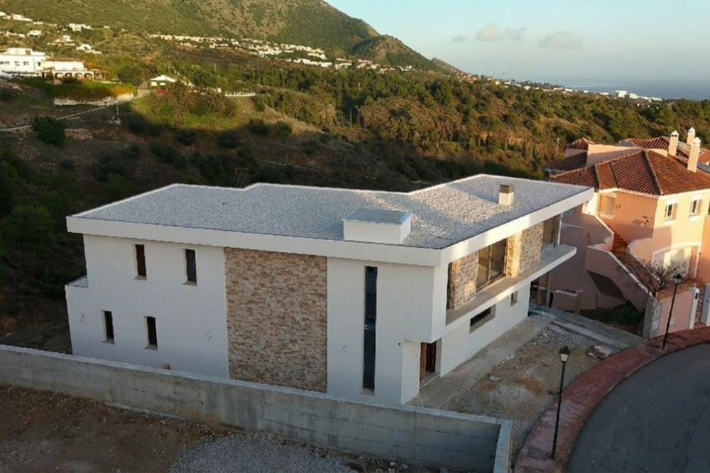 - Discover this charming luxury villa in Mijas, a modern gem with panoramic sea and mountain views, designed to offer an unparalleled experience in the captivating setting and spectacular climate of the Costa del Sol. READY TO MOVE IN 6 MONTHS Featuring a 36 m² outdoor infinity pool, this villa invites you to enjoy sunny days and unforgettable moments with breathtaking views. The property offers a total built area of 268.79 m², with a carefully planned layout: 127.46 m² on the upper floor, 141.33 m² on the ground floor, and a 213.38 m² basement, which includes storage areas and underground technical rooms, as well as 42.58 m² of porches. On the main floor, you will find an open-plan American-style kitchen seamlessly integrated with a spacious double-height living room, offering spectacular views and direct access to the pool. There is also a room that can be used as an office, if desired, along with a bathroom. The home is flooded with natural light, creating a warm and bright atmosphere throughout. For added convenience, there is an outdoor bathroom in the pool area. The upper floor features three bedrooms, each with its own en-suite bathroom, ensuring privacy and comfort for all residents. The villa also boasts state-of-the-art energy-efficient features, including underfloor heating and aerothermal technology, as well as solar panels for maximum energy savings. With a barbecue area with a fully equipped kitchen, this villa offers a versatile space that can be adapted to your preferences. The spacious entrance allows parking for up to five cars, or the option to convert part of the space into a private gym. In addition, there is the possibility of incorporating up to five or six bathrooms, tailored to the individual needs of each owner. Located just a 15-minute drive from Fuengirola and close to 12 golf courses, this villa enjoys a privileged location, only 7 minutes from Mijas Pueblo. Discover the perfect balance between modern luxury and coastal serenity in this stunning property. Get ready for your new home. Schedule a viewing and discover your ideal future space. OPTIONAL (Not included in the price): Elevator Kitchen + Laundry Room Heated Swimming Pool + Polycarbonate Cover Sauna Photovoltaic Panels + Hybrid Inverter In the Basement: Home Theater and Game Room with Bar, Gym, Apartment