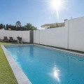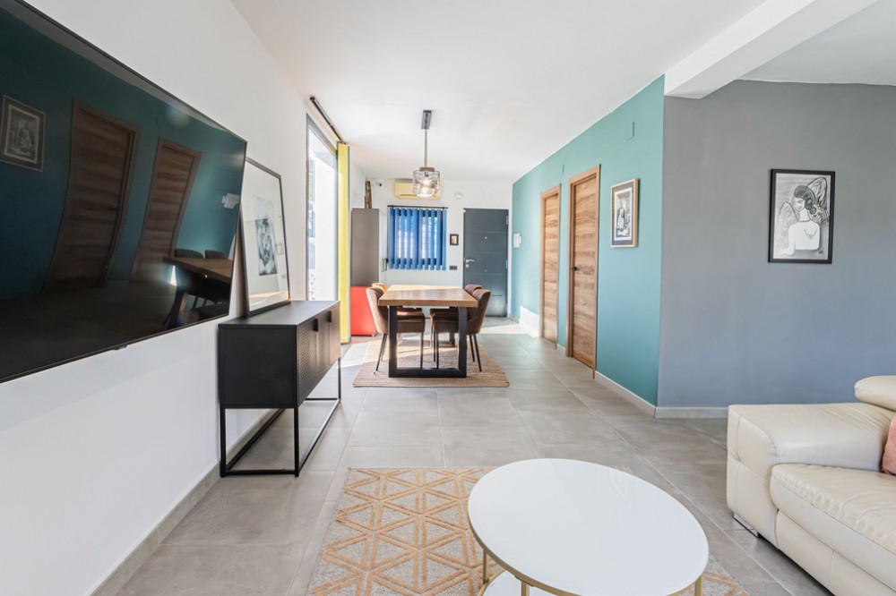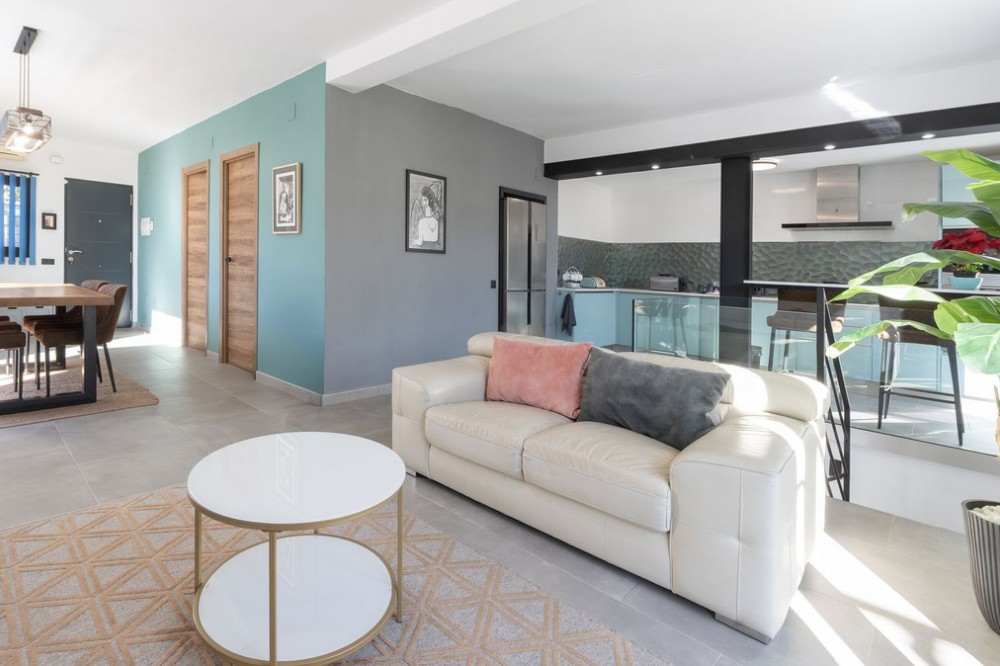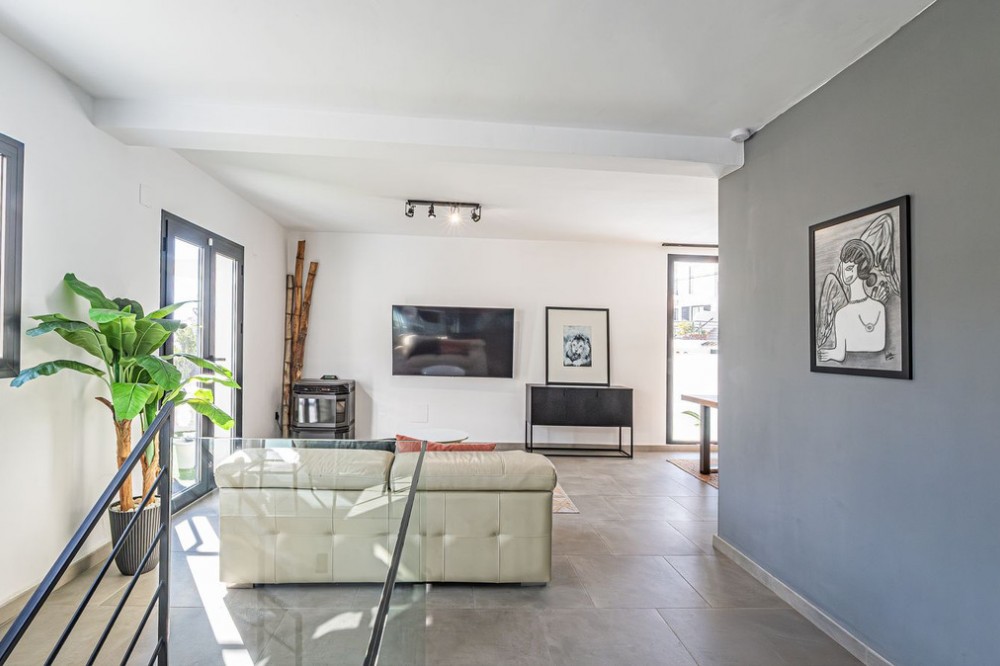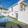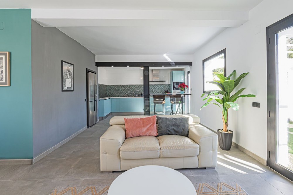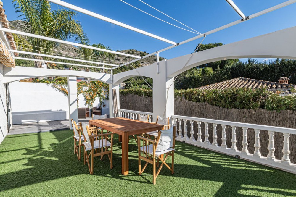 - READY TO MOVE IN! Detached villa completely renovated just three years ago, with attention to every detail and using high-end materials, designed to offer maximum comfort and quality of life. The property is spread over two floors and has been designed to enjoy spacious, bright and functional spaces. On the main floor, with direct access from the private car park, we are welcomed by an elegant hall that leads to a very spacious bedroom with a dressing room and a modern full bathroom. The heart of the house is a spacious living room, flooded with natural light thanks to its large windows and equipped with a pellet fireplace, integrated with a modern and fully equipped kitchen. From this area, there is access to a large south-facing terrace with views of the sea and the private swimming pool, ideal for enjoying the Mediterranean climate all year round. The ground floor currently houses a separate apartment, which is connected to the main house but has its own entrance, kitchen, lounge, bedroom, full bathroom and storage room, with direct access to the magnificent private swimming pool, surrounded by artificial grass, creating a perfect environment for relaxation and leisure. The property also has solar panels, providing energy efficiency and savings. Located in a prestigious residential area, just a few minutes' walk from a shopping area with a supermarket, pharmacy, cafés and restaurants, bus stop and Benalmádena Pueblo. Excellent and quick connection to the A-7 motorway, Carvajal beach and the local train station. A unique villa that combines location, design and comfort.