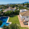 - Cosy and authentic villa for sale! This beautiful hacienda-style villa located in a quiet residential area of Artola Alta and next to Cabopino. Situated only a short walking distance from the natural reserve, Artola Dunes & Beach, Cabopino- Beach & Habour with its restaurants and supermarkets. The villa consists of three bedrooms and two bathrooms, two living rooms and kitchen with a utility room. Its distribution is functional being in one level and ensure privacy due to the master- bedroom & bathroom are separated from the guest- bedrooms & bathroom by the living- and dining areas. The house is private and secluded by a surrounding wall. The property is entered from north by the street via a gate that leads to the patio which gives access to a double garage and a covered entrance to the house. The éntre leads to a fully fitted kitchen and a large dining room. The house opens up towards the garden and pool area via the living room which also gives access to a covered terrace. The the pool area is nestled by a mature and lush tropical garden. The garden boasts several fruit baring trees. The property also have a 20 m2 roof top terrace where you can watch the sea and the sun setting over Marbella bay and La Concha mountain. With the villas current configuration, 3 bedrooms and two bathrooms it is ready for use - either as a permeant home, holiday home or for rental purpose. But the villa can easily be upgraded to a 4 bedrooms and 3 bathrooms within its existing walls. The plot size also allows further extension so it represent a great investment opportunity for an investor who is looking to either reform and or extend. All in all a cosy villa with a lot of potential.