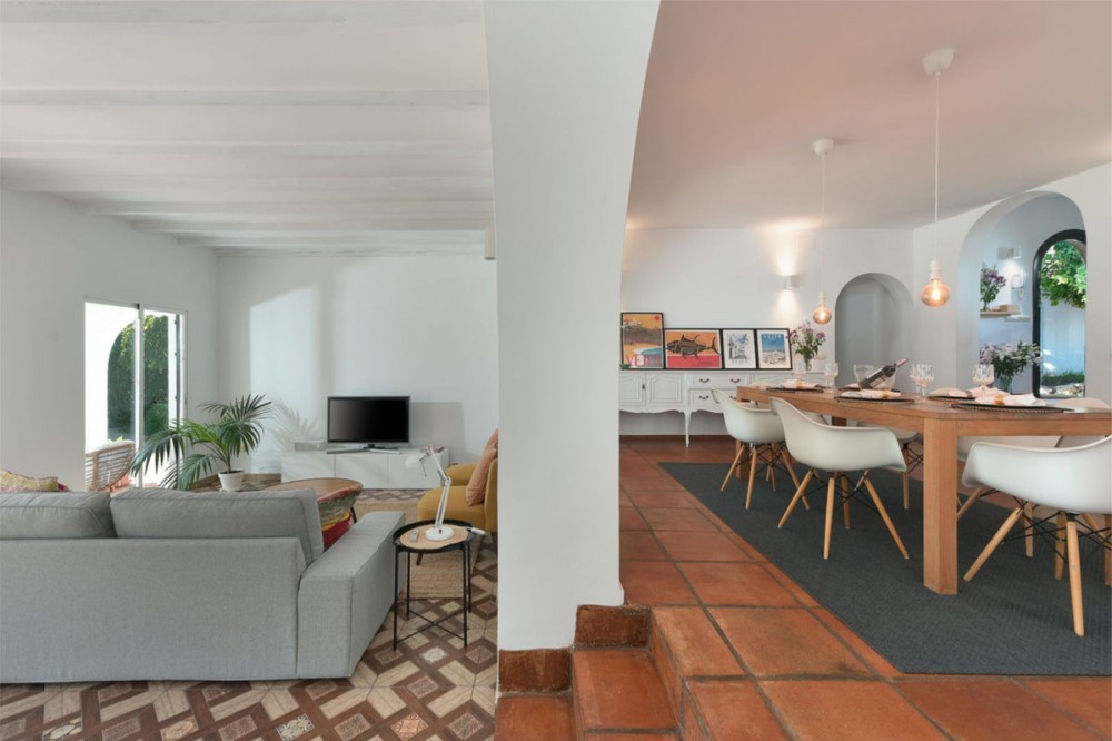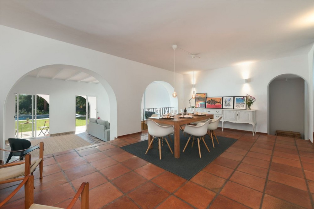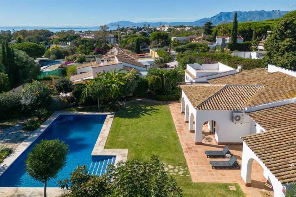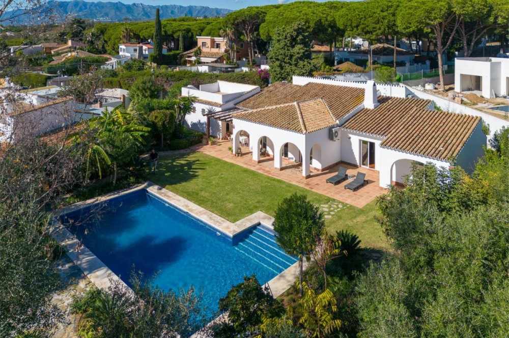 - Cosy and authentic villa for sale! This beautiful hacienda-style villa located in a quiet residential area of Artola Alta and next to Cabopino. Situated only a short walking distance from the natural reserve, Artola Dunes & Beach, Cabopino- Beach & Habour with its restaurants and supermarkets. The villa consists of three bedrooms and two bathrooms, two living rooms and kitchen with a utility room. Its distribution is functional being in one level and ensure privacy due to the master- bedroom & bathroom are separated from the guest- bedrooms & bathroom by the living- and dining areas. The house is private and secluded by a surrounding wall. The property is entered from north by the street via a gate that leads to the patio which gives access to a double garage and a covered entrance to the house. The éntre leads to a fully fitted kitchen and a large dining room. The house opens up towards the garden and pool area via the living room which also gives access to a covered terrace. The the pool area is nestled by a mature and lush tropical garden. The garden boasts several fruit baring trees. The property also have a 20 m2 roof top terrace where you can watch the sea and the sun setting over Marbella bay and La Concha mountain. With the villas current configuration, 3 bedrooms and two bathrooms it is ready for use - either as a permeant home, holiday home or for rental purpose. But the villa can easily be upgraded to a 4 bedrooms and 3 bathrooms within its existing walls. The plot size also allows further extension so it represent a great investment opportunity for an investor who is looking to either reform and or extend. All in all a cosy villa with a lot of potential.