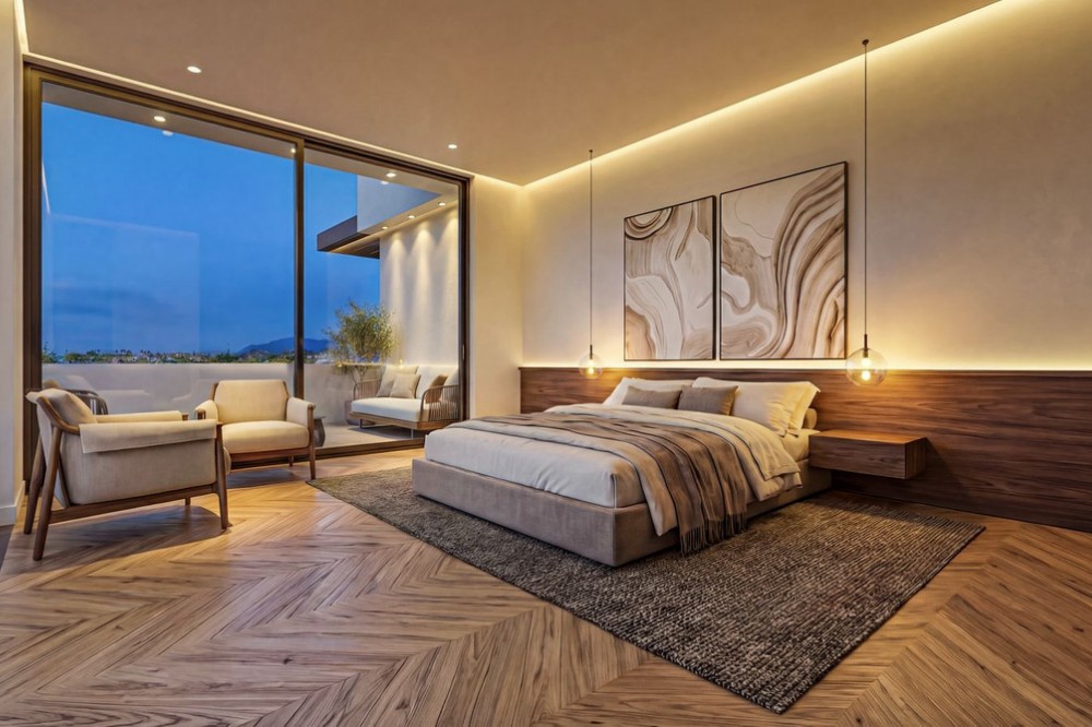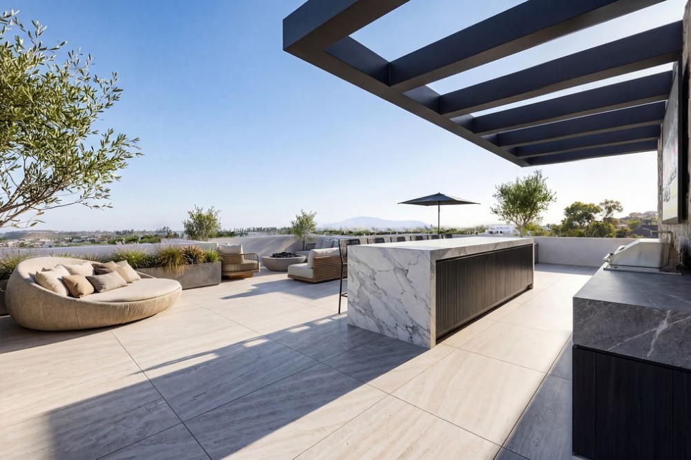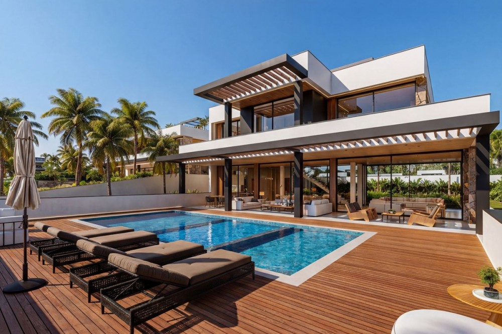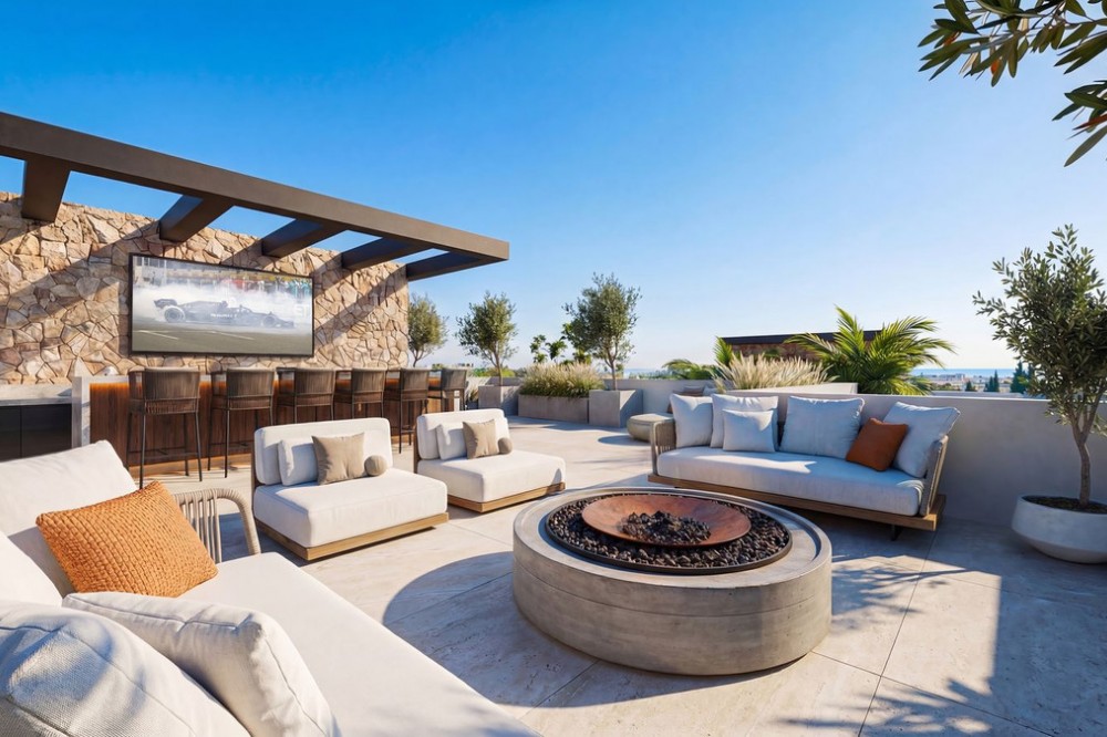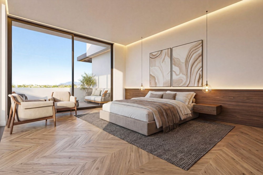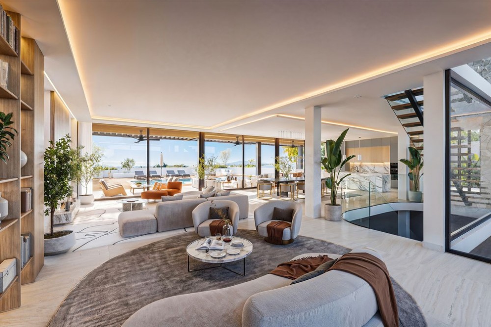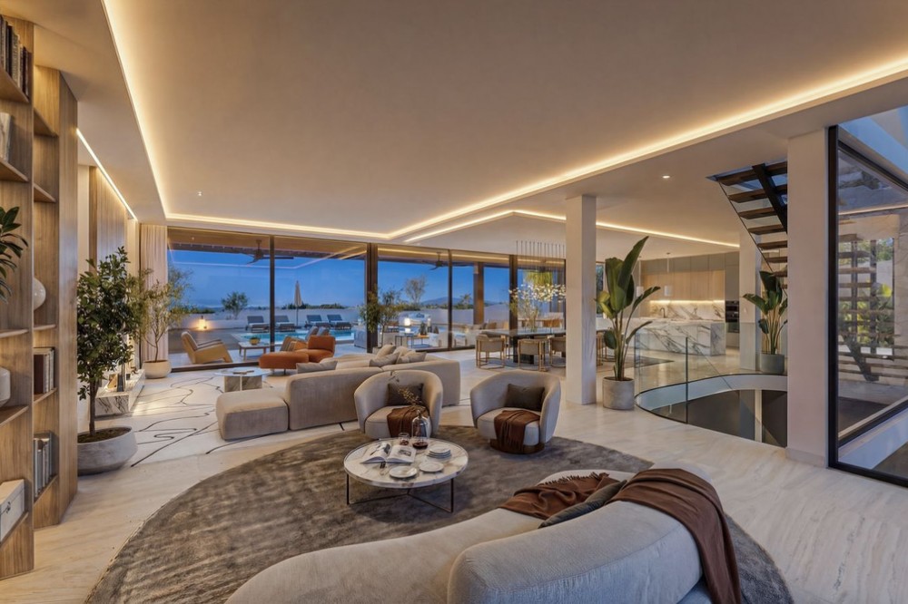 - New Development: Prices from €3,750,000 to €3,750,000. [Bedrooms: 5] [Bathrooms: 5] [Built size: 599m2]. Luxury Off-Plan Villa | Completion Q1 2027 An exceptional opportunity to secure a stunning contemporary residence currently under construction, scheduled for completion in Q1 2027. Designed for modern luxury living, this impressive home combines expansive interior spaces with seamless indoor–outdoor living and the rare opportunity for full interior customisation at this stage of construction. The property will feature a spacious open-plan kitchen, dining, and living area that flows effortlessly onto more than 100 sqm of covered terraces, creating a perfect blend between interior comfort and outdoor living. Large openings and thoughtful architectural design maximise natural light and create a strong connection to the surrounding outdoor spaces. Accommodation includes five ensuite bedrooms, offering both privacy and comfort. The ground floor hosts one ensuite bedroom, ideal for guests or multi-generational living. The first floor features four further ensuite bedrooms, each with built-in wardrobes and private balconies, providing light-filled spaces and pleasant outdoor access from every bedroom. The basement level is designed for leisure and guest accommodation, featuring a private guest apartment, a luxurious indoor pool and spa area, and additional space ideal for relaxation, entertainment, or a private wellness retreat. Further highlights include: Four-car garage Private elevator servicing all floors Large rooftop terrace ideal for entertaining and sunset views Outdoor swimming pool Over 100 sqm of covered terrace areas Underfloor heating throughout Built-in wardrobes in all bedrooms Private balconies for every bedroom Conveniently located within walking distance to supermarkets, pharmacies, cafés, and restaurants, the property offers both privacy and easy access to everyday amenities. With construction already underway, buyers have a rare opportunity to fully customise interior finishes, materials, and design elements, allowing the creation of a truly bespoke luxury residence. This remarkable future home combines generous proportions, high-end amenities, and contemporary architecture, offering an exceptional lifestyle in a brand-new luxury property upon completion