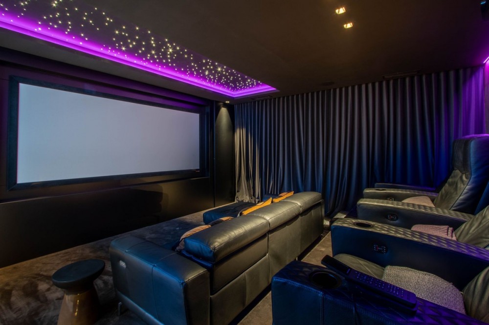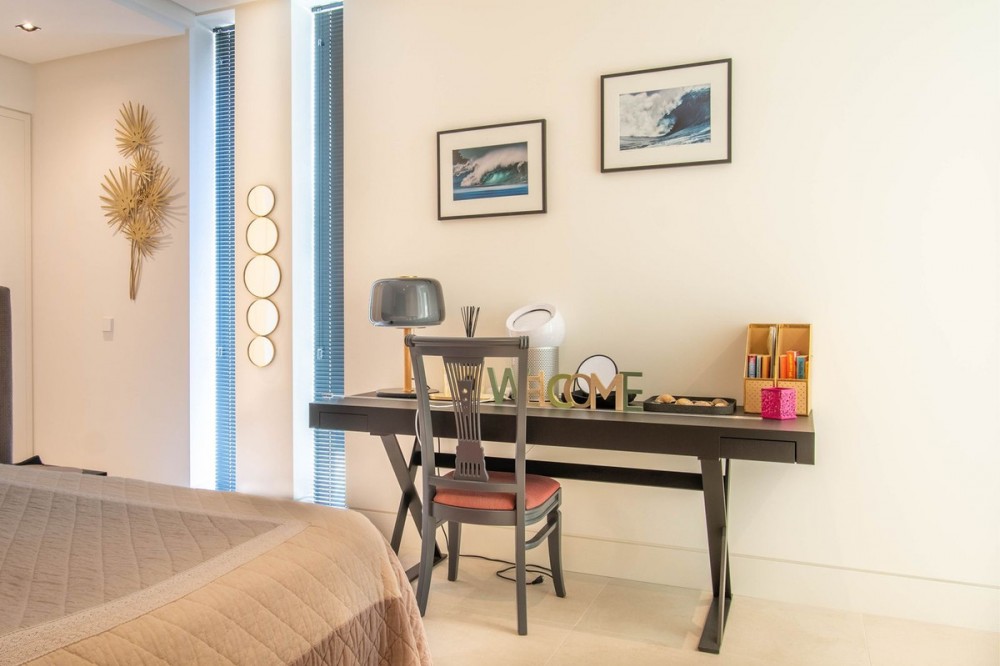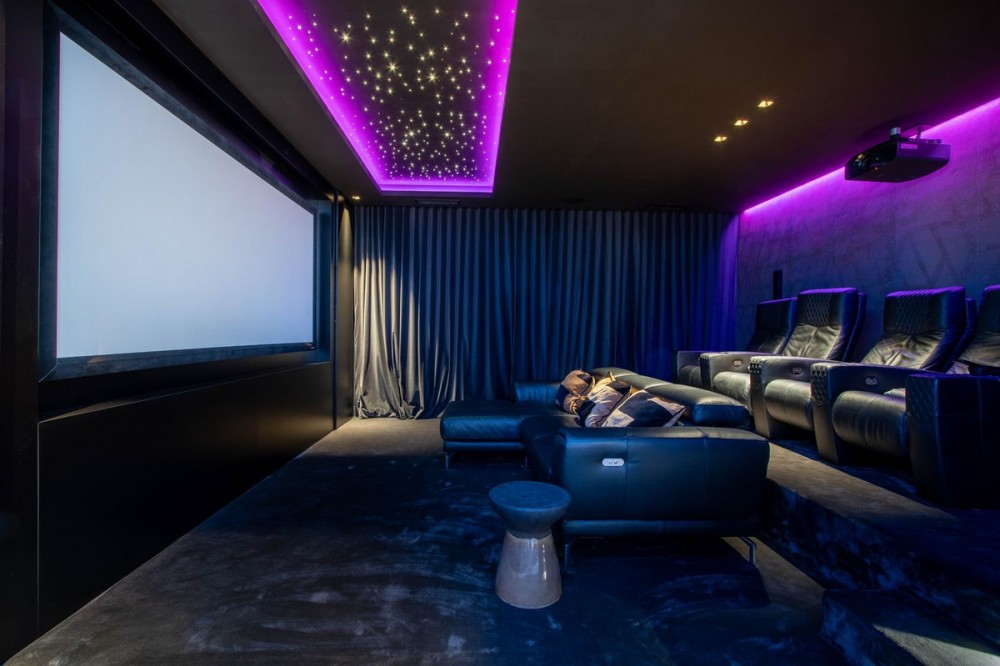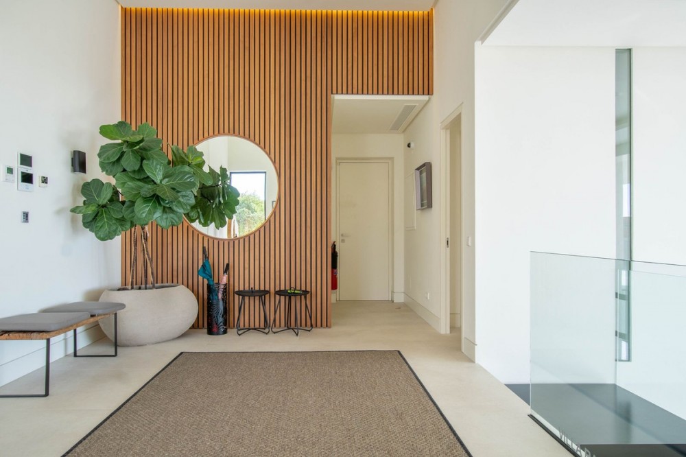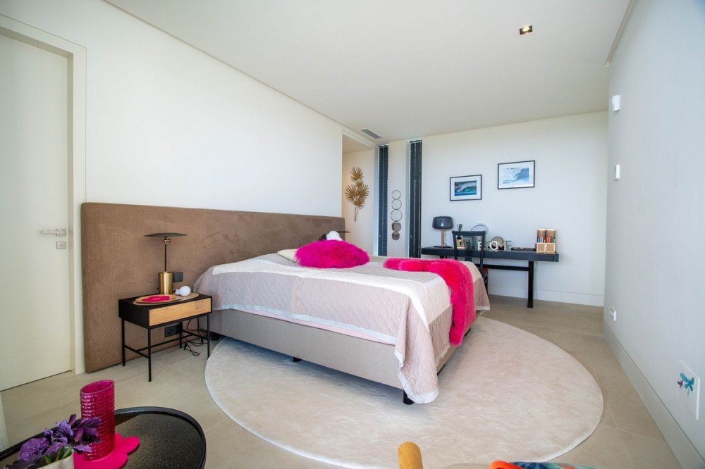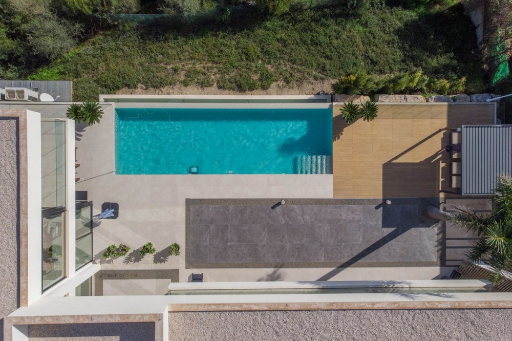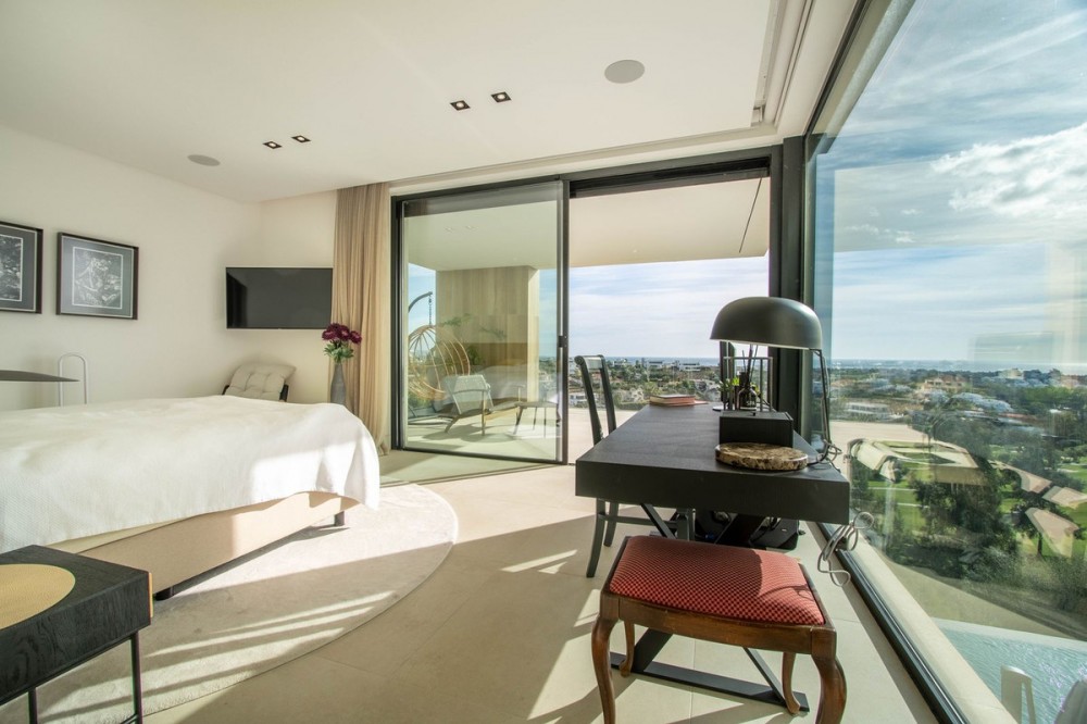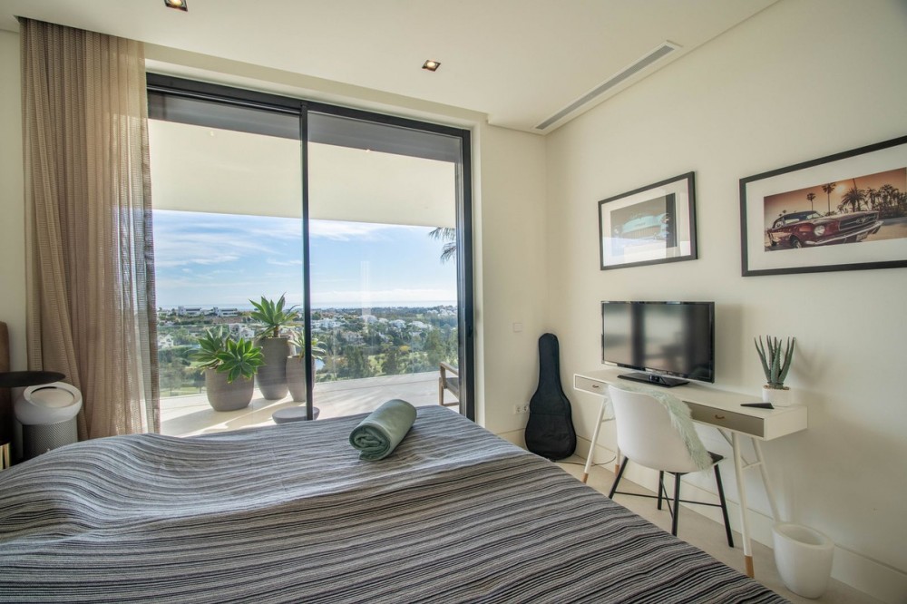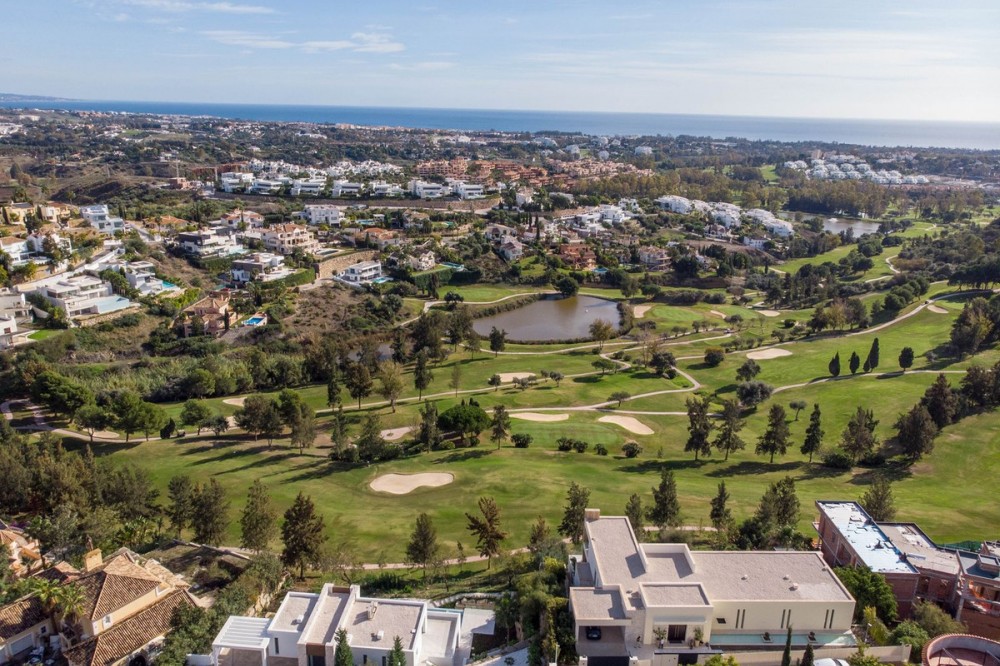 - Stunning contemporary villa with panoramic mountain, golf and sea views in La Alqueria, Benahavis This exclusive masterpiece, a designer villa by Carlos Lamas, houses a total of 5 bedrooms and 6 bathrooms, all of which have been completely designed with high-quality materials and equipped with the latest technologies. The impressive villa is located close to several golf courses, tennis & paddle courts, supermarkets, shops, restaurants, schools and the best beaches and beach clubs in the area. A short drive will bring you to Marbella, Puerto Banús, Benahavís, San Pedro de Alcántara and Estepona. The house consists of three floors, accessible via elevator or floating stairs, and has a beautiful, spacious double-height entrance hall. Large sliding windows integrated into the wall easily connect indoor and outdoor living. You can enjoy incredible panoramic sea views from almost anywhere in the villa. The spectacular basement is fully equipped, featuring a games area, walk-in bodega, bar, lounge area, spa, gym, utility room and proper cinema room. The property also has spacious covered and uncovered terraces with panoramic sea, mountain and golf views, an amazing infinity pool, jacuzzi, outdoor kitchen and barbecue.The main terrace has been totally transformed with new tiles and led lights that can be changed to any color.