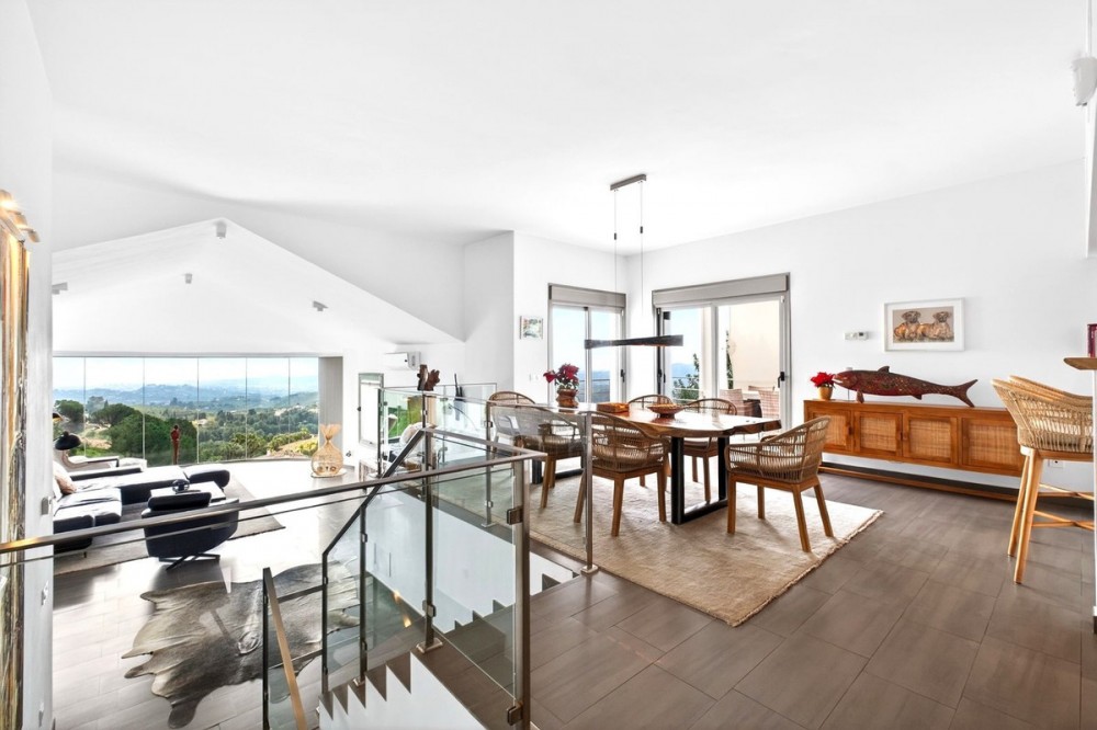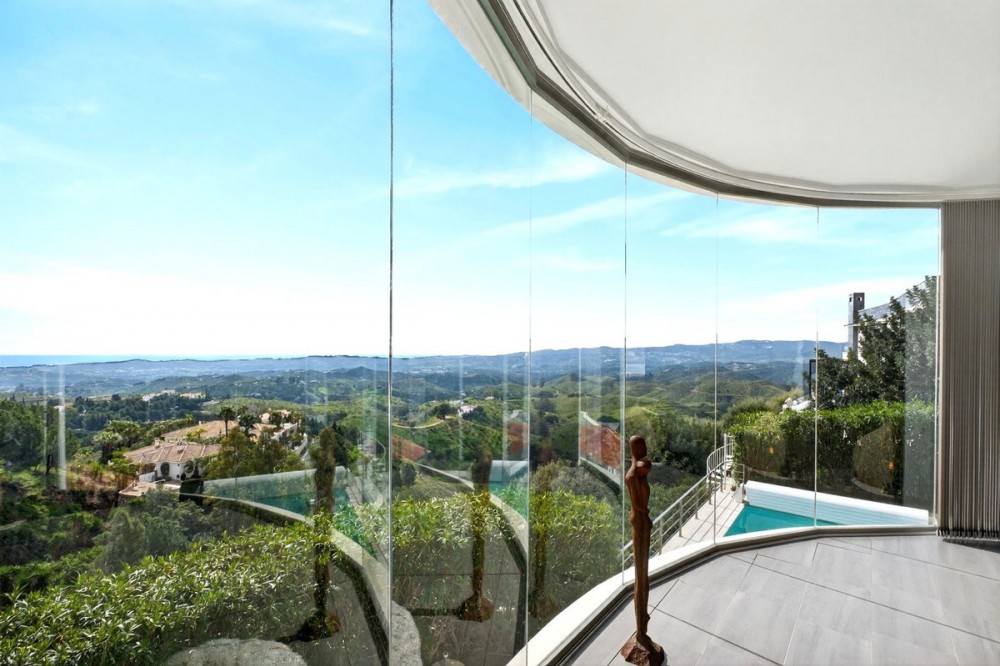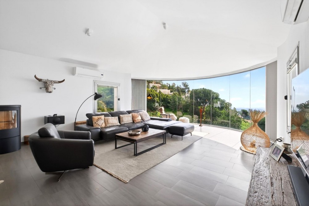 - Luxury Contemporary Villa Panoramic Sea & Mountain Views | Private Plot | Premium Lifestyle Location Prestigious Valtocado, close to Mijas Pueblo, beaches, golf courses, and Málaga Airport. Overview .A Private Mediterranean Retreat Set on a 2,616 m² plot, in the hills of Valtocado, this exceptional contemporary villa offers privacy, architecture, refined living and breathtaking views. Designed to embrace light and landscape, every space connects seamlessly with the outdoors and the natural surroundings Key Features - Split-level living area with a cathedral ceiling and iconic panoramic window. - 5 Bedrooms & 5 Bathrooms - Heated swimming pool with electric cover - Garage for 2 vehicles - Sauna & wellness area - 15 solar panels - Air conditioning per floor - Central ventilation system - Electric shutters - Fully fenced plot with automatic gates Seamless Indoor–Outdoor Living Expansive terraces, a heated pool, and elegant lounge areas create the perfect environment for relaxation and entertaining. Architectural Elegance The iconic semi-circular panoramic window defines the main living space, framing uninterrupted views of sea and mountains. Refined Interiors Modern finishes, spacious layouts, and carefully curated design elements offer comfort and sophistication throughout. Contemporary Kitchen A fully equipped modern kitchen with direct access to the garden enhances everyday living and entertaining. Comfort & Privacy Generous bedrooms with natural light and access to terraces provide a peaceful retreat. Wellness & Relaxation Private sauna and relaxation areas elevate the lifestyle offering of this exceptional home.