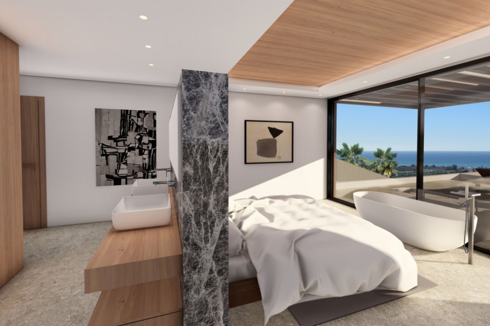 - New Development: Prices from €4,690,000 to €4,690,000. [Bedrooms: 5] [Bathrooms: 5] [Built size: 733m2]. Located in the exclusive setting of Finca Cortesin, Casares, one of the most prestigious residential destinations in southern Europe, this villa represents the perfect combination of elegance, privacy and high-end Mediterranean lifestyle. Finca Cortesin is internationally renowned for its iconic five-star resort, world-class hotel, championship golf club and 24-hour security. The development offers a carefully designed environment with wide avenues, low building density and a layout that guarantees open views, tranquillity and maximum exclusivity. Located between Marbella and Sotogrande, and just a few minutes from the beaches of Casares Costa, the area offers strategic connections to Puerto Banús, world-class golf courses and marinas, while maintaining a serene and private atmosphere that is highly valued by international buyers. From its privileged position, the villa enjoys stunning panoramic views of the Mediterranean Sea and the natural landscape that characterises the area. The orientation and architectural design have been carefully studied to maximise natural light and enhance the visual connection with the surroundings, creating spaces that convey spaciousness, harmony and sophistication. This villa sits on a plot of 1,785 m² (with 733 m² of floor space) and comprises a total of 5 bedrooms, 5 bathrooms and two separate toilets. The property has been designed with a contemporary concept in which modern architecture is integrated with fine materials, natural textures and large glass surfaces. The clean lines and fluid layout allow the interior spaces to extend outwards, where spacious terraces, chill-out areas and a private swimming pool create an ideal setting for both relaxation and entertainment.