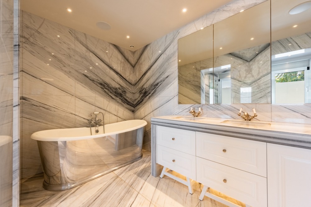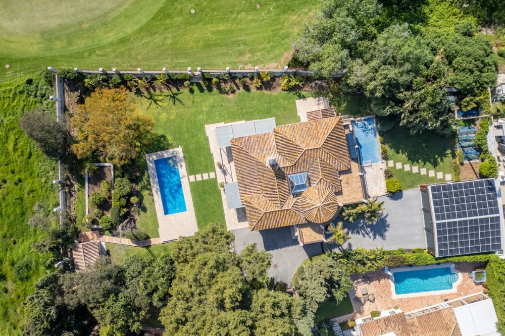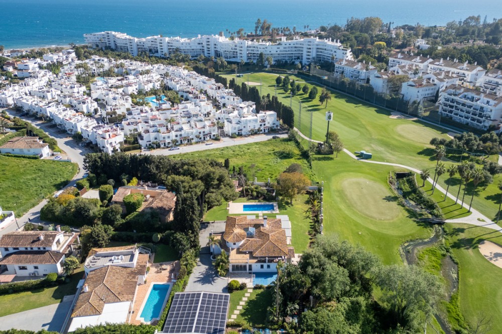 - Villa Los Leones Set in one of the most prestigious and sought-after enclaves of San Pedro, this exceptional frontline golf villa in Linda Vista offers a rare combination of privacy, scale and future development potential all within walking distance to the beach, Laude school and a wide selection of restaurants. Occupying an expansive plot of 2,322m² directly bordering the renowned Guadalmina golf course the property enjoys a privileged south position with open green views, mature landscaping and complete tranquillity while still being moments away from the vibrant lifestyle of the coast. The existing residence is thoughtfully distributed across 460m² of built space, with 264m² of interior living and 331 m² of terraces designed to maximise outdoor living. The home features a heated saltwater swimming pool generous garden areas a private football pitch and a fully equipped gym, creating a perfect environment for both relaxation and family life. Inside the property is equipped with modern comforts including underfloor heating in all bathrooms and the kitchen, triple-glazed security windows and a fully integrated smart home system controlled via tablet or mobile. A comprehensive security system with cameras and sensors ensures peace of mind while the recently upgraded hot water system and energy-efficient solar installation (120m² of panels) significantly reduce running costs. The garage offers space for three vehicles with independent access further enhancing practicality and convenience. A key highlight of this property is its remarkable development potential. The plot permits a total build of approximately 1,508m² including the option to construct up to 812m² plus a basement with a 35% building allowance and the possibility to develop up to 696m² on a single level. In addition the land can be divided into four separate plots making it possible to build four independent villas. This creates a unique opportunity for developers or investors to fully capitalise on the value of this prime location as well as for end-users seeking to design and build a bespoke luxury home in one of the most exclusive beachside areas with limited availability. Linda Vista is one of the few remaining areas on the San Pedro beachside where large plots of this calibre still exist offering a unique blend of exclusivity space and proximity to the sea. A rare opportunity to secure a frontline golf villa with significant upside potential in one of Marbella’s most desirable locations.