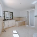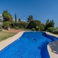 - Nestled in the heart of El Paraíso Medio, this beautiful five-bedroom, four-bathroom detached villa offers a perfect blend of timeless Andalusian charm and modern comfort, all within easy walking distance of local amenities. Designed in the classic architectural style that defines the area, the villa enjoys an elevated դիրction with breathtaking panoramic coastal views—best appreciated from the impressive first-floor master suite and its private wraparound terrace. The ground floor is exceptionally spacious and thoughtfully arranged, centred around a bright open-plan living and dining area bathed in natural light and enhanced by a welcoming fireplace. This elegant space flows seamlessly onto an expansive covered terrace—partially enclosed with glass curtains—allowing for effortless year-round indoor-outdoor living. An additional, more informal family lounge or snug sits adjacent to the main reception area, providing further versatility. The well-appointed kitchen features hardwood cabinetry, a central island, and a charming breakfast area, complemented by a separate laundry room and a practical boot room with direct access to the driveway. Accommodation on this level is both generous and flexible. A spacious guest suite—ideal as an alternative master bedroom—is accompanied by a further en-suite bedroom and two additional guest bedrooms sharing a well-appointed family bathroom. A guest cloakroom and a versatile office complete this floor. Notably, three of the guest bedrooms and the office are located within a separate wing with its own private entrance, offering excellent flexibility—perfect for hosting guests in complete independence or for running a home business. Upstairs, the expansive master suite provides a true retreat, featuring a dressing room, a luxurious en-suite bathroom, a large linen cupboard, and direct access to a private wraparound terrace boasting spectacular sea and coastal views. The exterior is equally impressive, with beautifully landscaped gardens, mature trees, and a private freeform swimming pool. An extensive driveway provides ample parking for multiple vehicles, while a double garage offers further potential, including the possibility of creating a first-floor guest apartment. An additional single garage is ideal for a golf buggy or garden storage. Combining sustainability with comfort, the villa benefits from excellent energy efficiency, with solar panels, aero thermal heating system and a water storage system installed by the current owners. While there is air conditioning and underfloor heating the desirable south-facing orientation ensures warmth and natural light year-round. A truly exceptional home in one of the Costa del Sol’s most sought-after residential areas.
