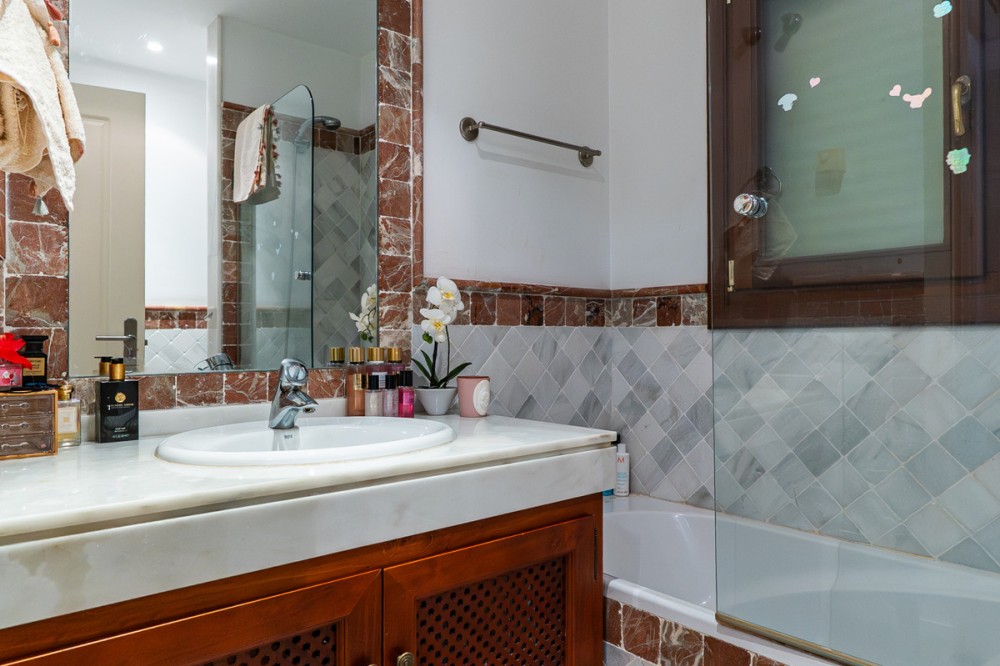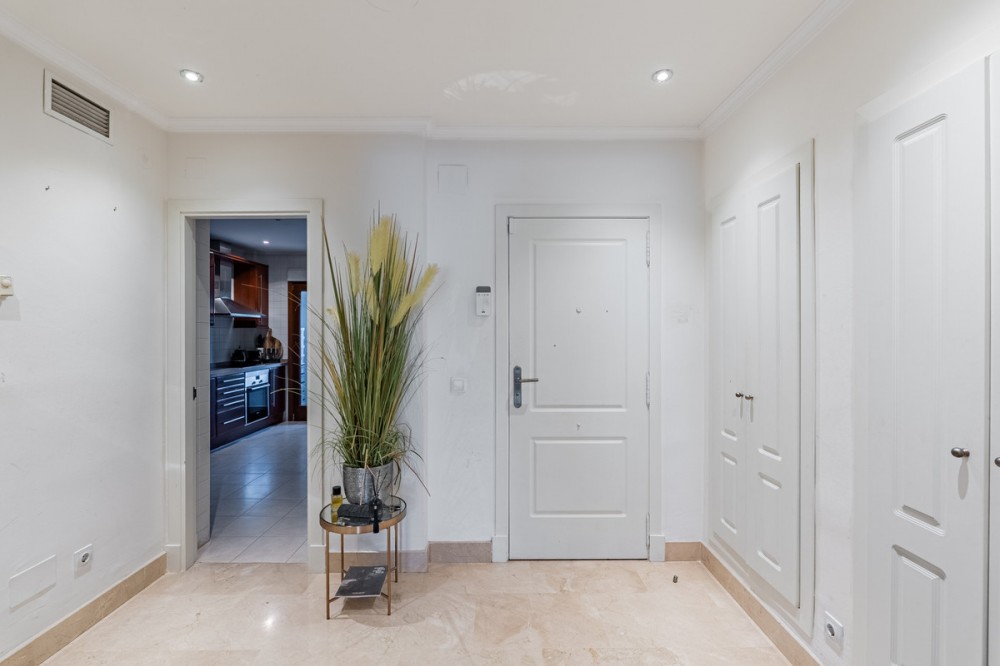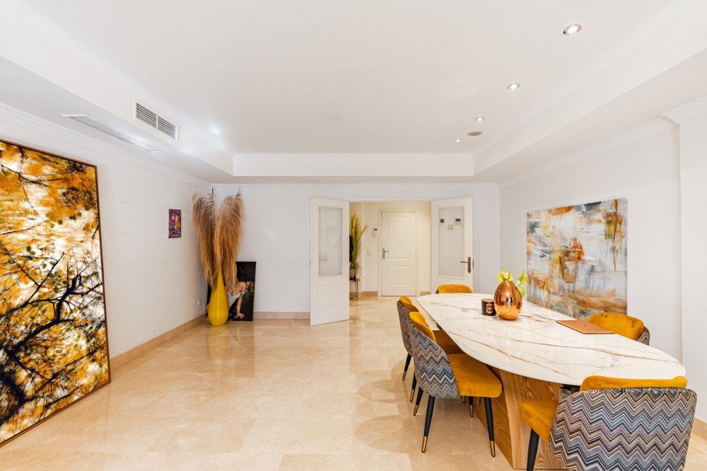 - Set within the exclusive gated community of Lomas del Rey on the Marbella Golden Mile, this elegant ground-floor apartment offers a rare sense of space, privacy, and effortless indoor-outdoor living. With a total built area of 245 m², complemented by a generous 75 m² terrace and a private garden, the property is designed for those who value comfort without compromising on location. The apartment features a bright and well-proportioned living and dining area with a fireplace, opening directly onto the terrace and garden, creating a natural flow between interior and exterior spaces. The kitchen is fully fitted and includes a separate utility area, while the two bedrooms are spacious and quietly positioned, including a comfortable master suite. Large windows throughout the property allow for plenty of natural light, particularly in the afternoon thanks to its west-facing orientation. Finished with quality materials such as marble flooring, underfloor heating, air conditioning, and electric blinds, the apartment offers a level of comfort suited for both permanent living and extended stays. It also includes two private underground parking spaces and a storage room, adding practicality to the overall offering. The community is known for its mature landscaped gardens, large communal pool, and a peaceful, secure environment, all just minutes away from Marbella’s key destinations, including Puente Romano Resort, Puerto Banús, and the beaches of the Golden Mile. This is a well-balanced property in one of Marbella’s most established residential areas, equally suitable as a main residence, a holiday home, or a solid investment with consistent demand.