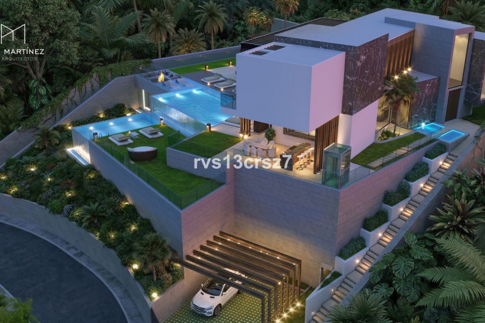 - Introducing Villa Esmeralda—an exceptional opportunity to create a truly bespoke luxury residence in the prestigious area of Elviria. Set on a generous 1,860 m² plot, this exclusive property offers breathtaking panoramic views and complete privacy—an increasingly rare combination on the Costa del Sol. Designed for those who demand the very best, Villa Esmeralda blends elegance, comfort, and cutting-edge living. A building license has been applied for a spectacular 600 m² villa, thoughtfully designed to include 7 spacious en-suite bedrooms, ensuring ultimate comfort for both family and guests. The residence will feature a private guest accommodation, a fully equipped gym, and a state-of-the-art home cinema—creating the perfect balance between relaxation and entertainment. Step outside and experience true resort-style living with a stunning infinity pool, complemented by a luxurious jacuzzi, all surrounded by serene natural beauty. The villa also includes a large garage and is equipped with a private lift, ensuring convenience across all levels. Every detail has been carefully considered: from high-end finishes to designer bathrooms and a premium kitchen, Villa Esmeralda will be delivered to the highest luxury standards. Located just a short 3–4 minute drive from the beaches and vibrant center of Elviria, this property offers both tranquility and accessibility—placing world-class amenities, dining, and leisure right at your doorstep. Construction time is estimated between 12–18 months. Alternatively, the project can be realized under your own management, with the option to acquire the plot including all permits—giving you full control to shape your dream home. Villa Esmeralda is more than a property—it's a statement of lifestyle, exclusivity, and refined living.