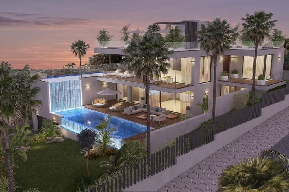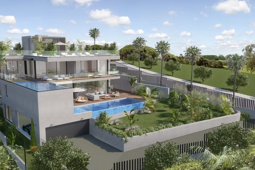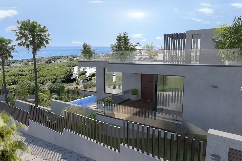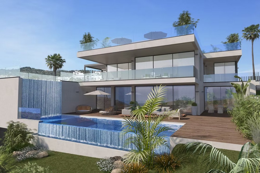- New Development: Prices from €5,750,000 to €5,750,000. [Bedrooms: 5] [Bathrooms: 5] [Built size: 836m2]. Nestled in a distinctive and peaceful setting in Cabopino on the Costa del Sol, far from the crowded coastline, this exceptional villa is truly captivating. It embodies elegance, design, and outstanding quality. This charming detached home reflects a refined sense of style—perfectly suited to those who will call this extraordinary residence their home. Set in a stunning natural environment, the property offers remarkable views over the golf course, stretching to the Mediterranean Sea, North Africa, and the port of Cabopino. This contemporary villa showcases a passion for modern architecture, combining sophisticated design, carefully considered interiors, and innovative, spacious layouts. The home features multiple bedrooms, en-suite options, walk-in wardrobes, generous living areas, a fully equipped kitchen, and a private infinity pool.